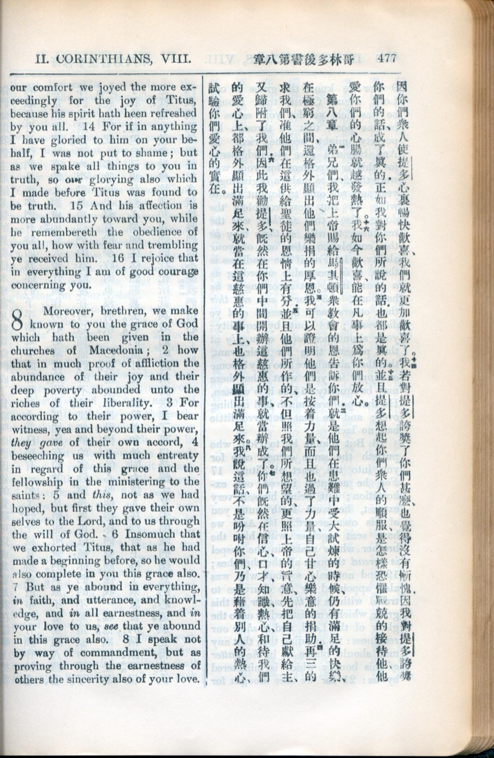 1936年新约全书 哥林多后书 7 章 14 节到 8 章 8 节