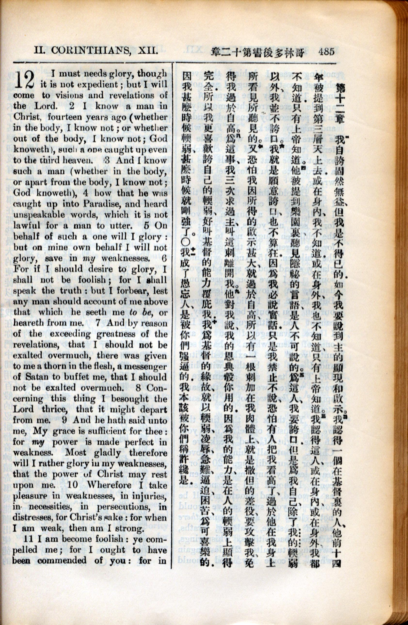 1936年新约全书 哥林多后书 12 章 1 节到 12 章 11 节