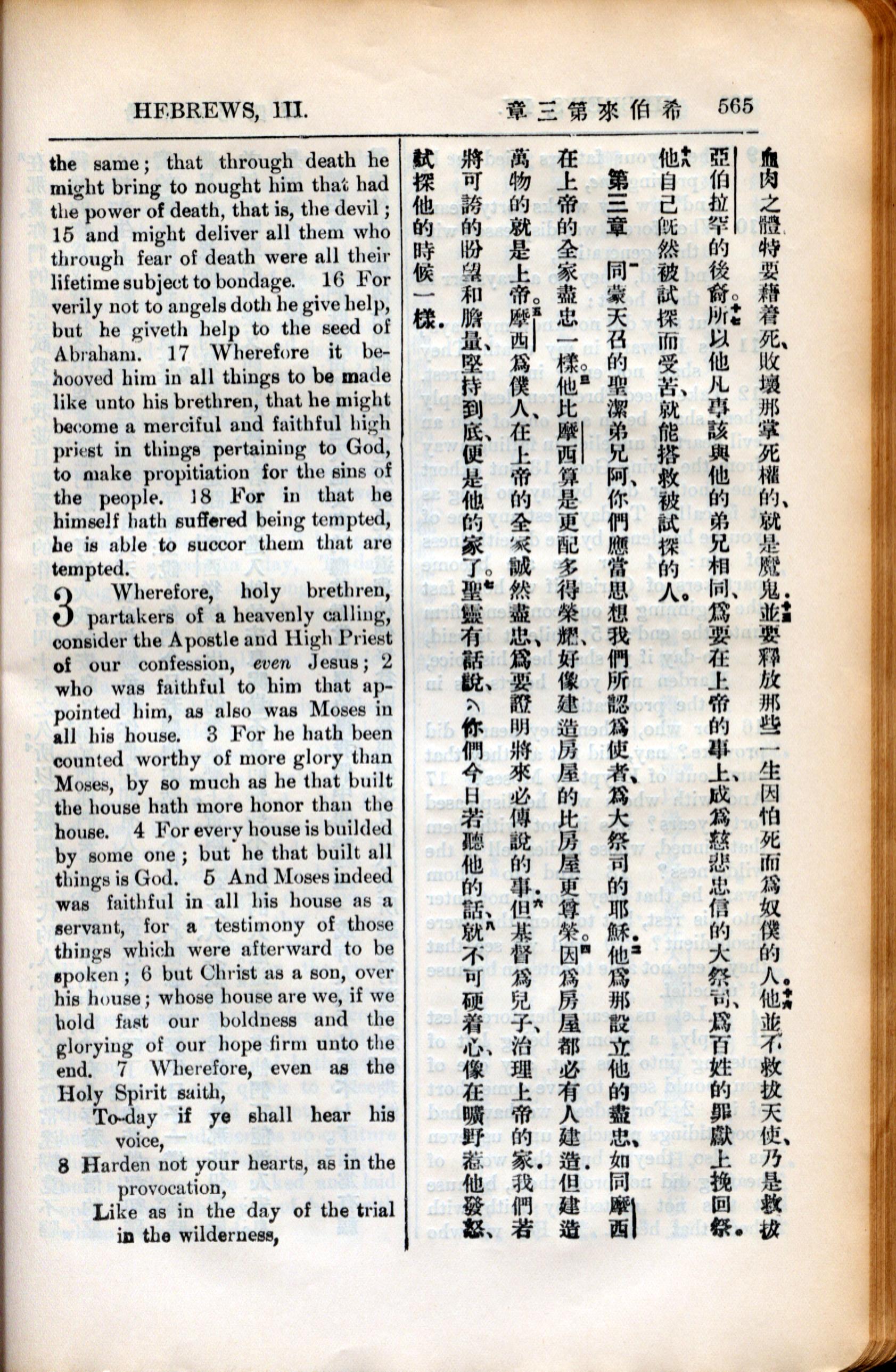 1936年新约全书 希伯来书 2 章 15 节到 3 章 8 节