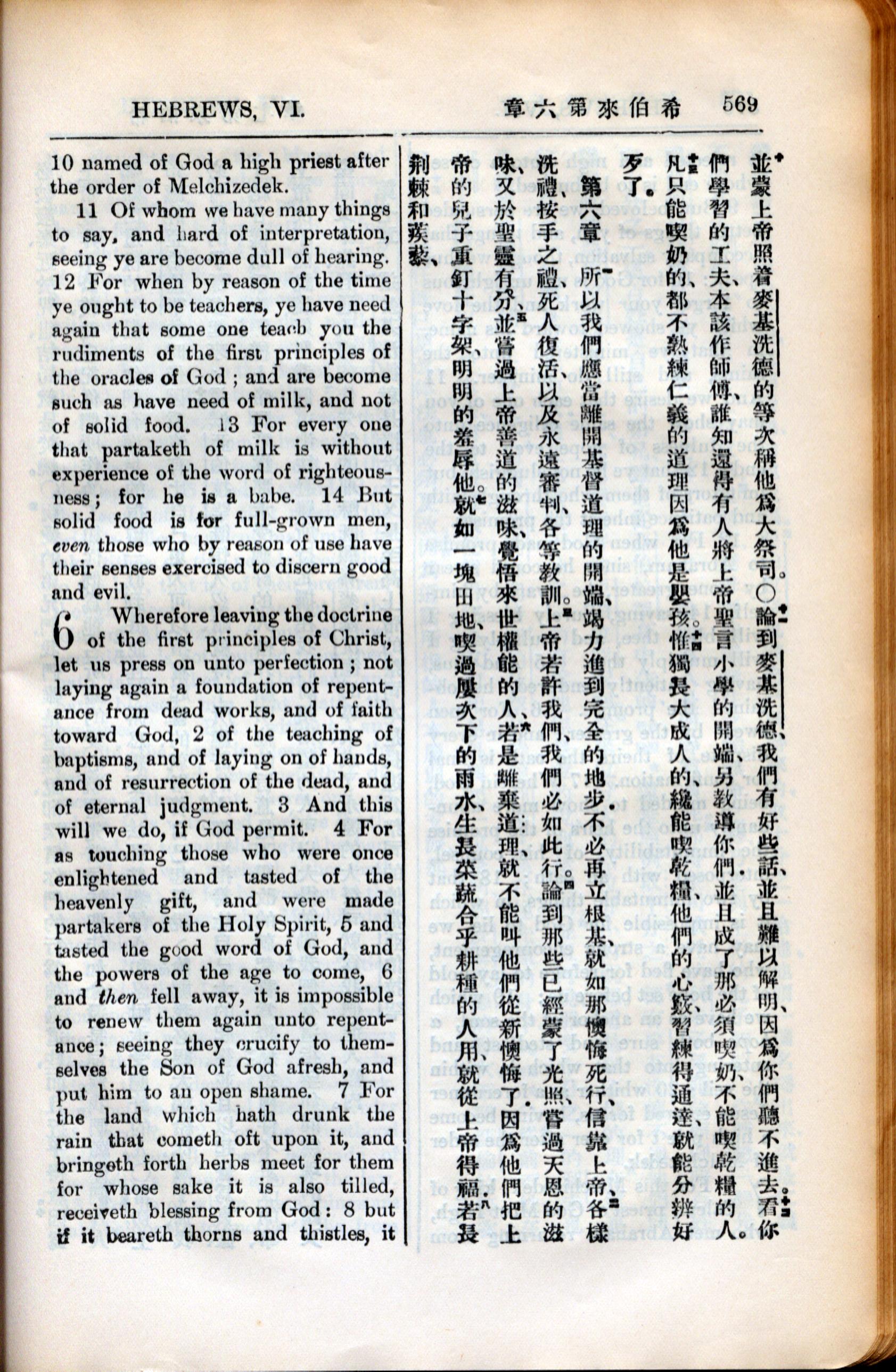 1936年新约全书 希伯来书 5 章 10 节到 6 章 8 节