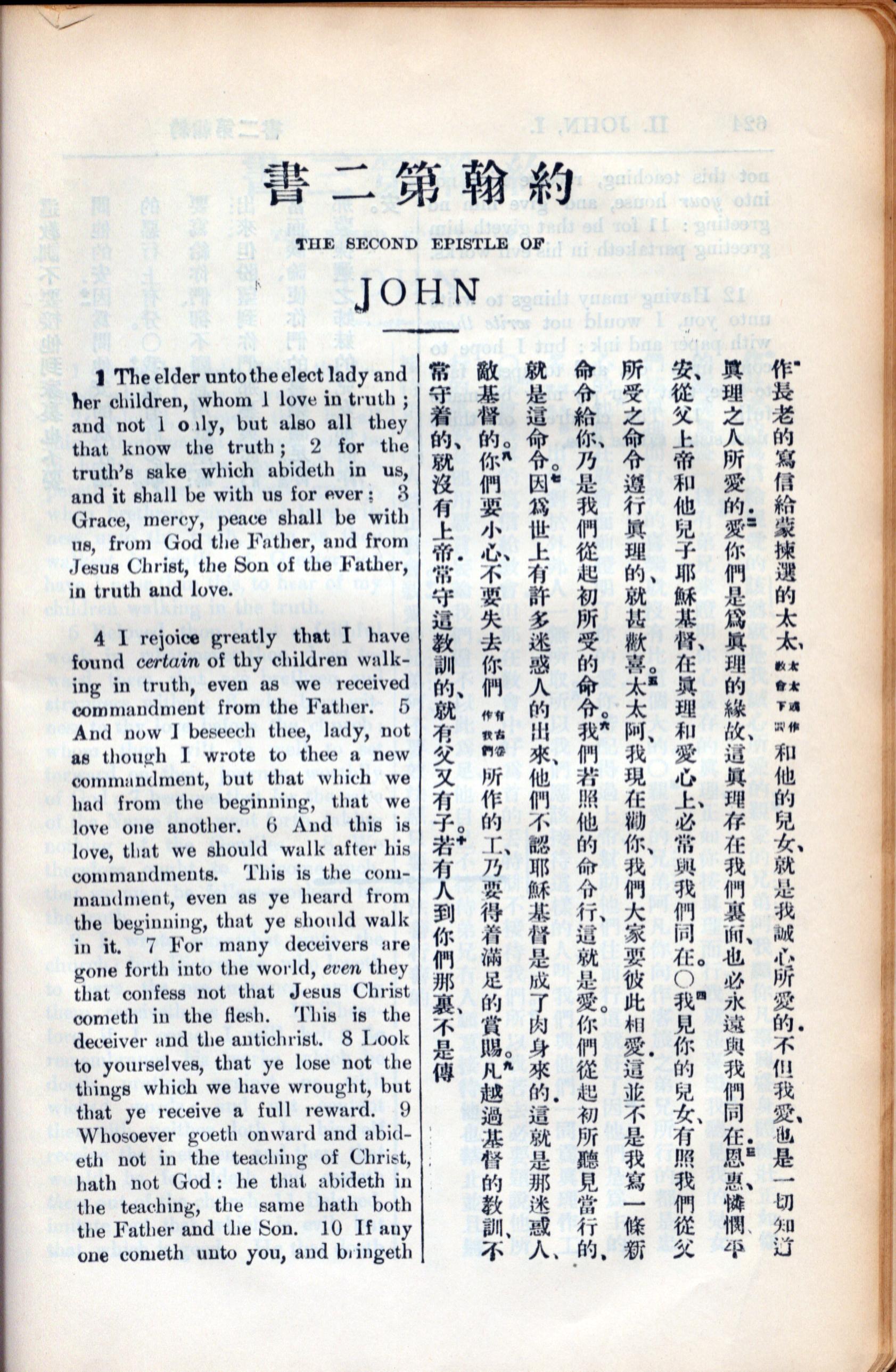 1936年新约全书 约翰二书 1 章 1 节到 1 章 10 节