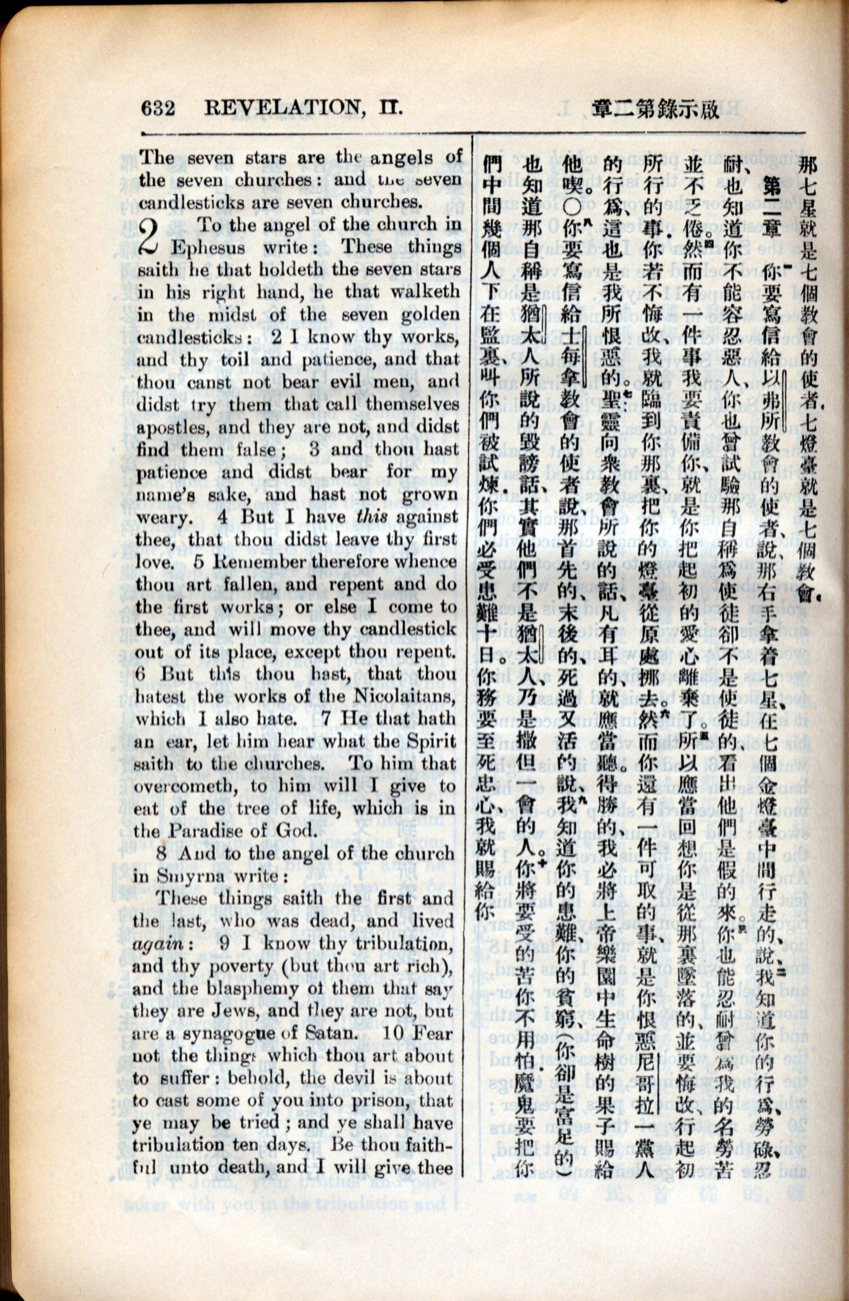 1936年新约全书 启示录 2 章 1 节到 2 章 10 节
