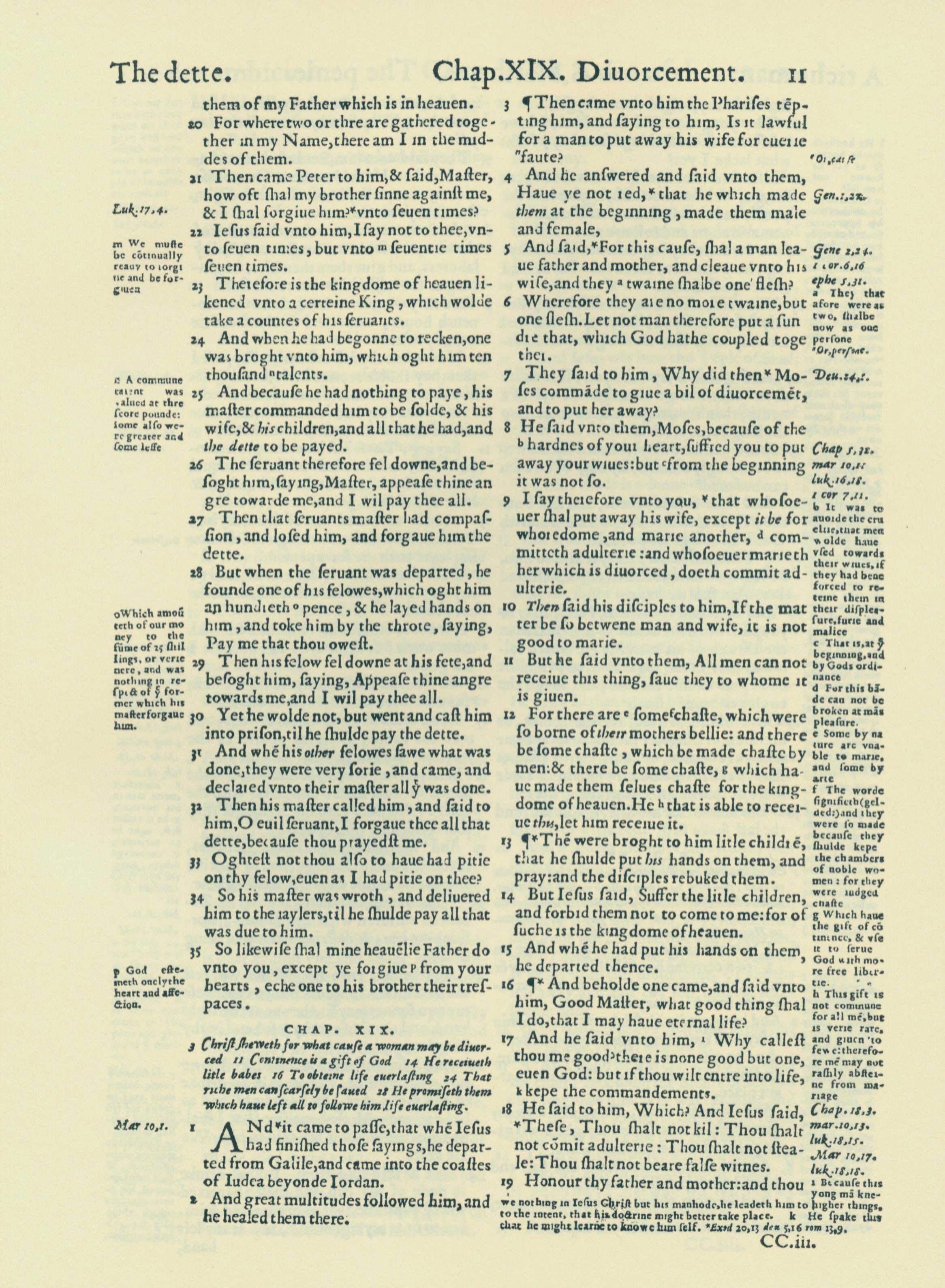 1560年THE BIBLE AND HOLY SCRIPTURES 马太福音 18 章 20 节到 19 章 19 节