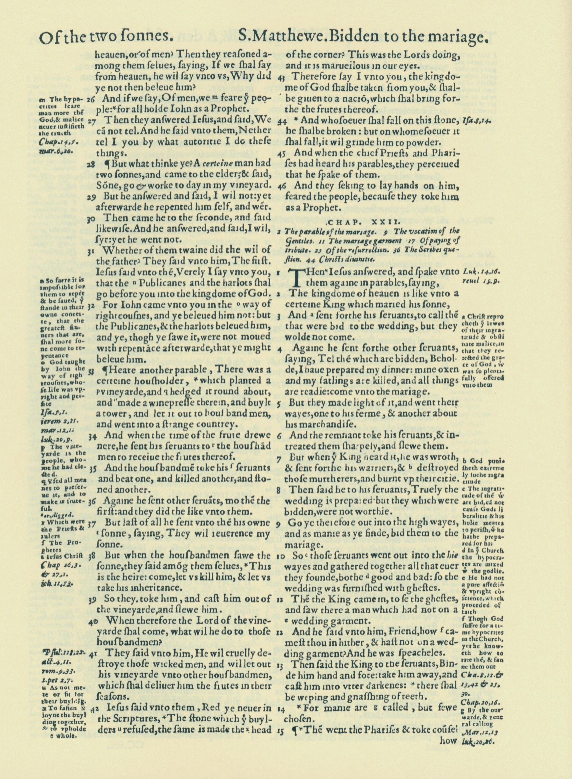 1560年THE BIBLE AND HOLY SCRIPTURES 马太福音 21 章 26 节到 22 章 15 节