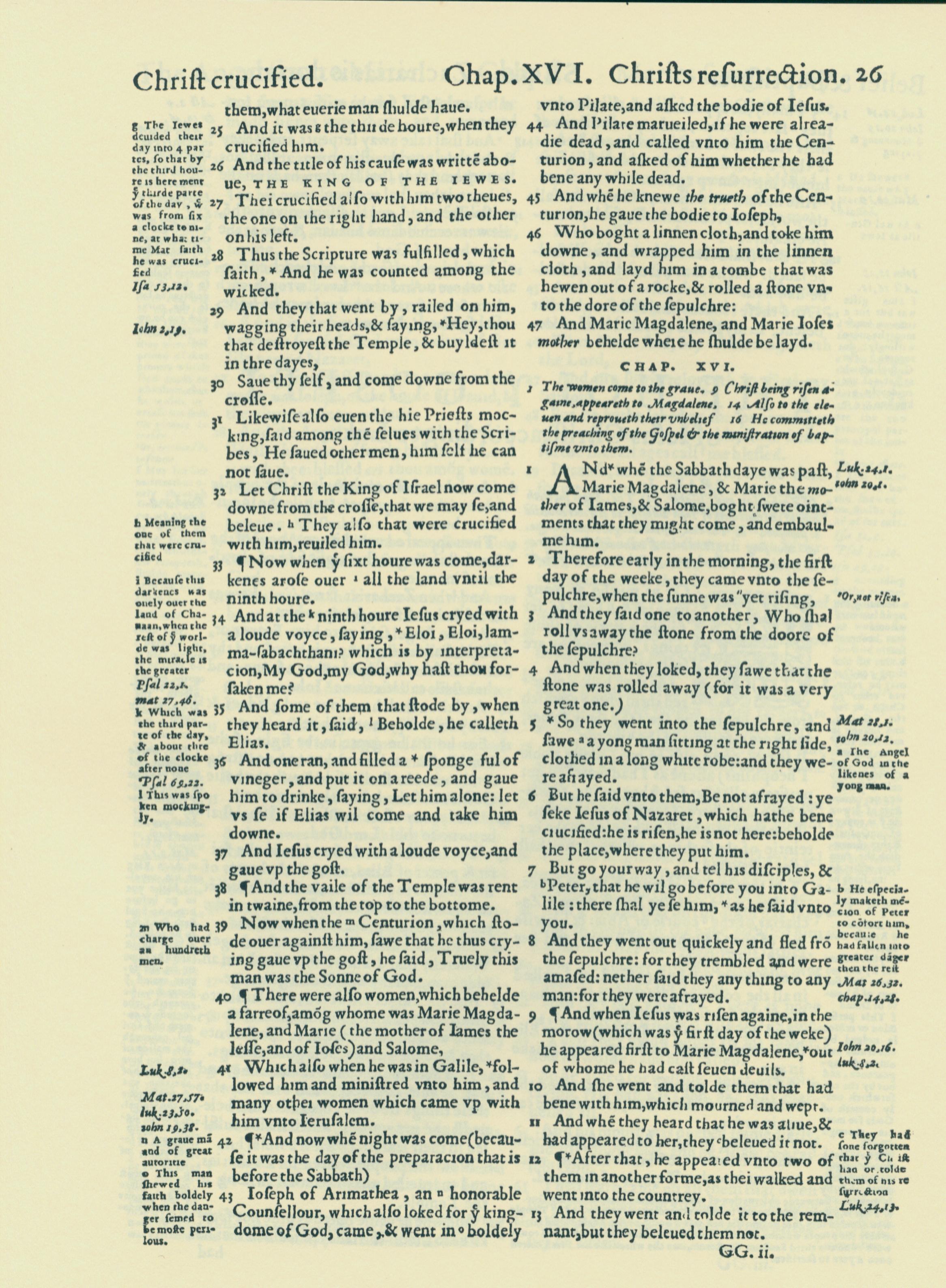 1560年THE BIBLE AND HOLY SCRIPTURES 马可福音 15 章 25 节到 16 章 13 节