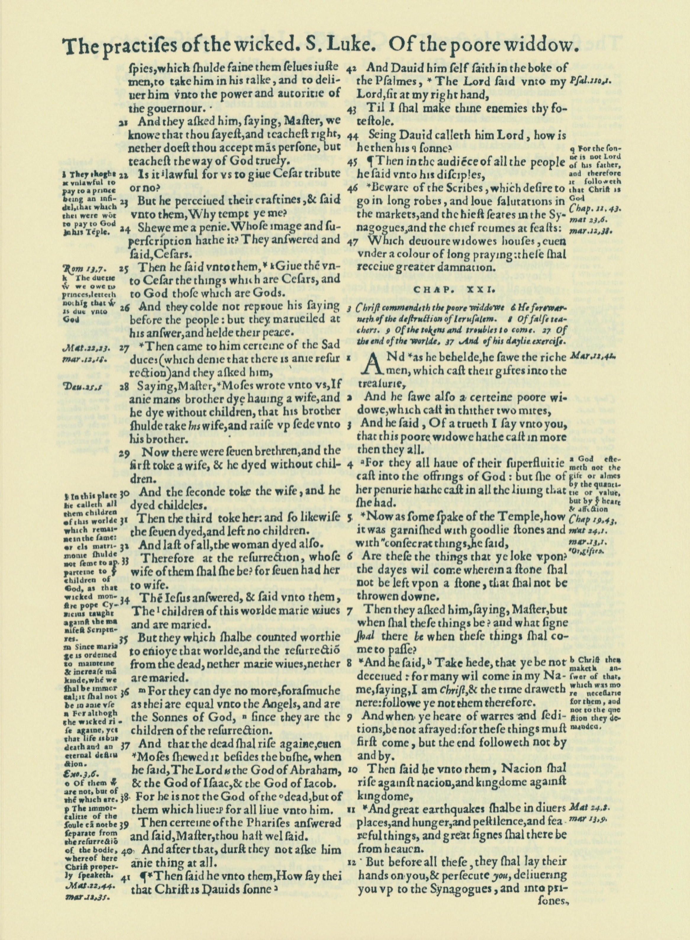 1560年THE BIBLE AND HOLY SCRIPTURES 路加福音 20 章 21 节到 21 章 12 节
