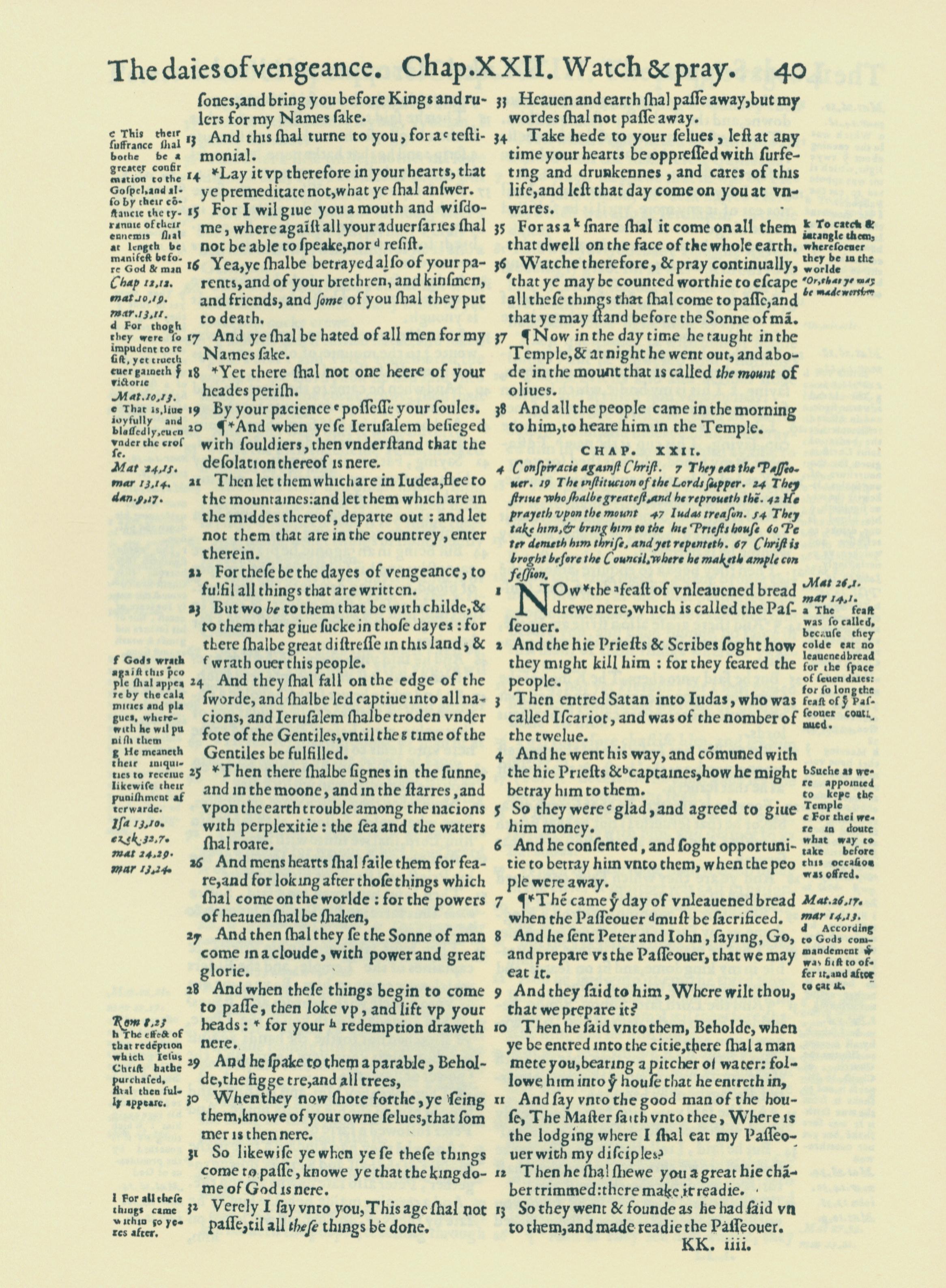 1560年THE BIBLE AND HOLY SCRIPTURES 路加福音 21 章 13 节到 22 章 13 节