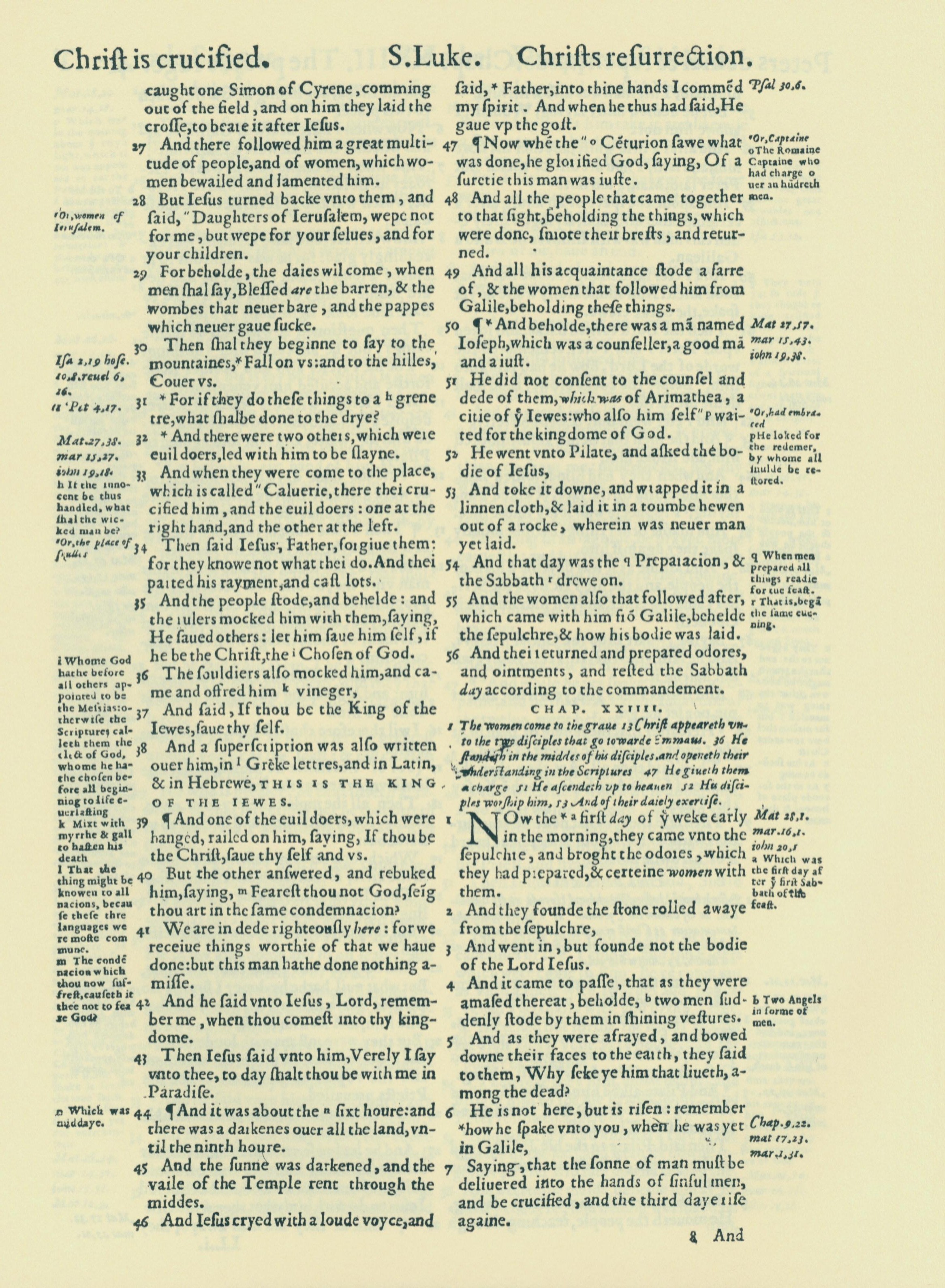 1560年THE BIBLE AND HOLY SCRIPTURES 路加福音 23 章 27 节到 24 章 7 节