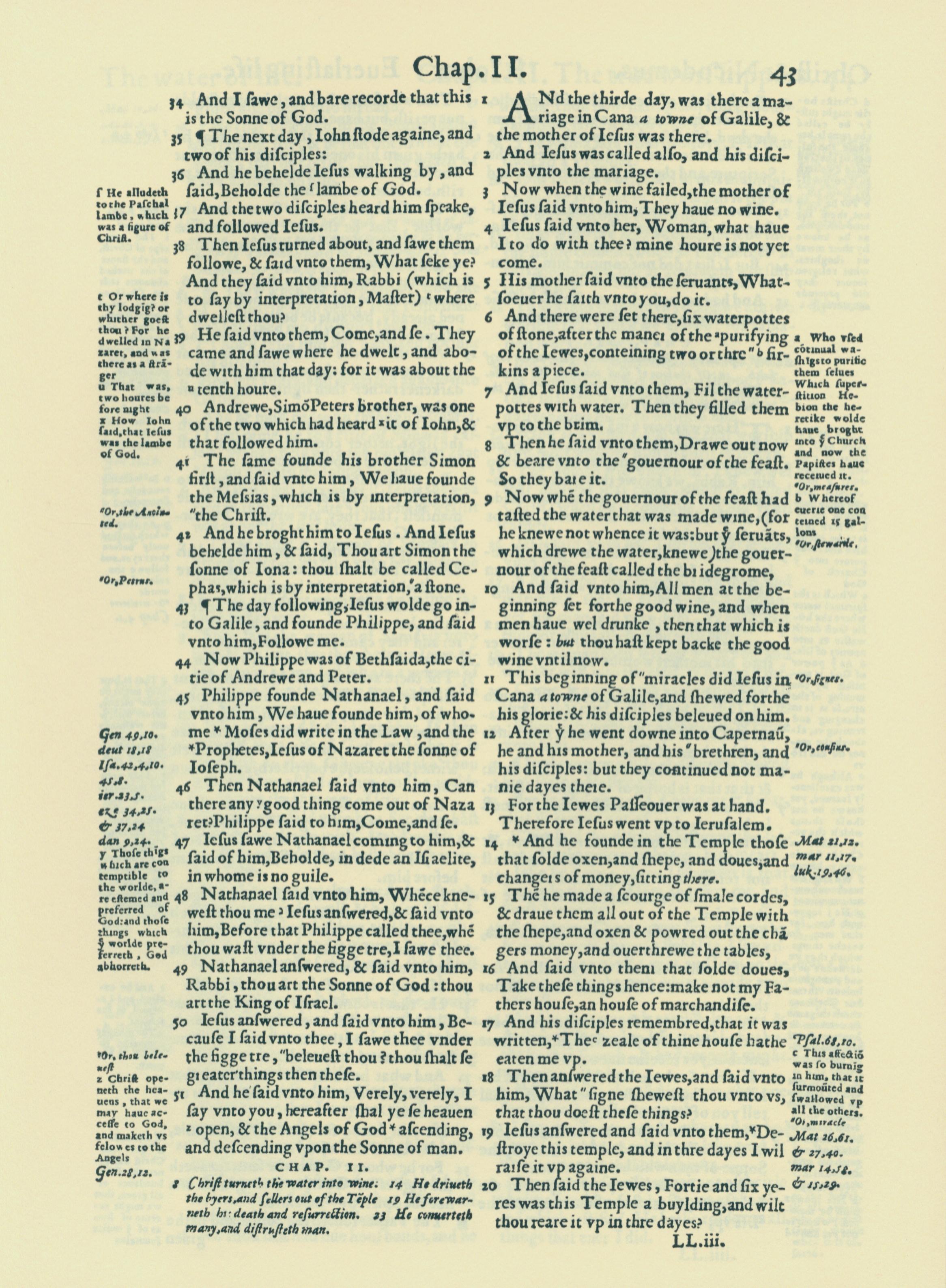 1560年THE BIBLE AND HOLY SCRIPTURES 约翰福音 1 章 34 节到 2 章 20 节