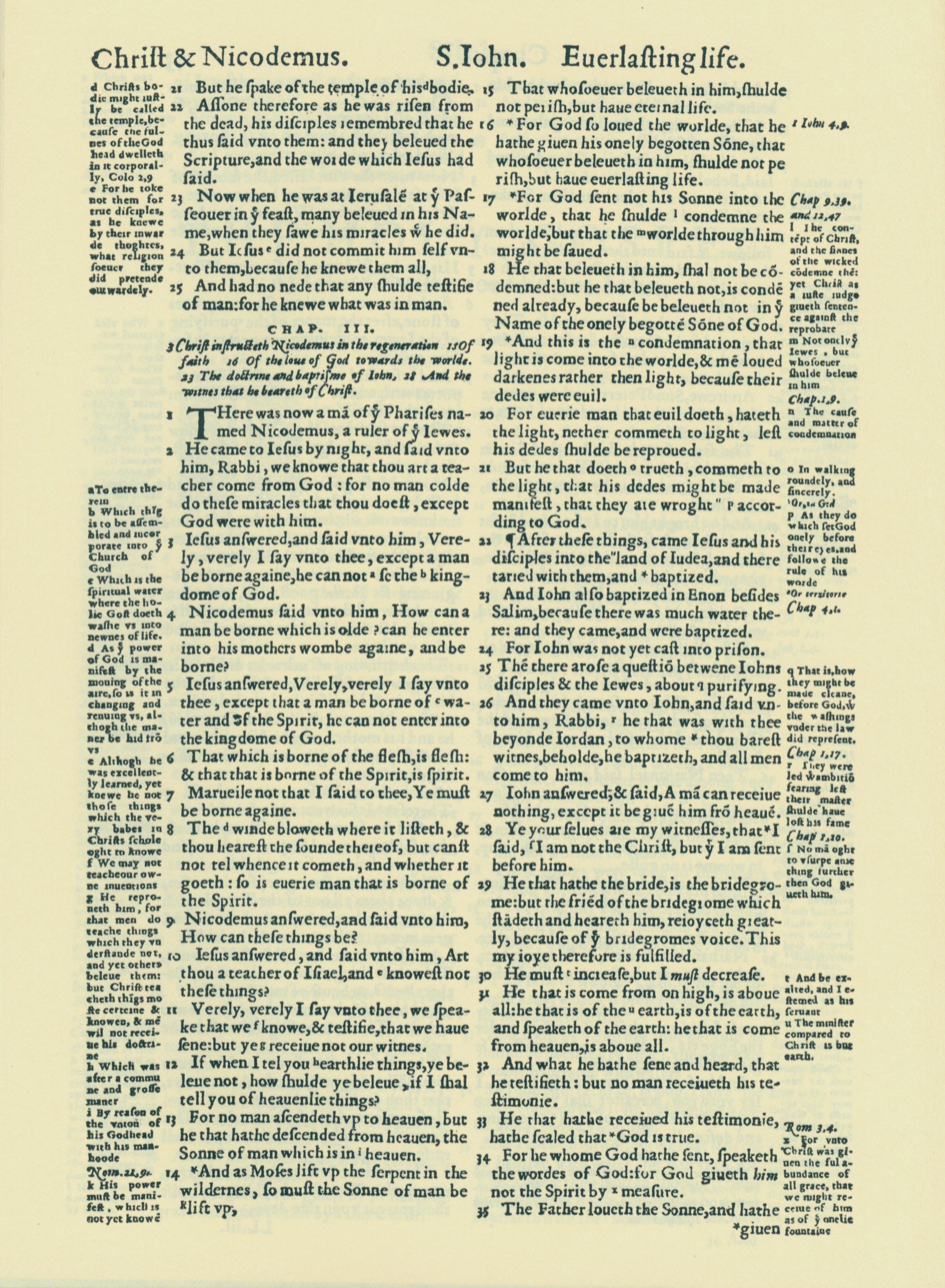 1560年THE BIBLE AND HOLY SCRIPTURES 约翰福音 2 章 21 节到 3 章 35 节