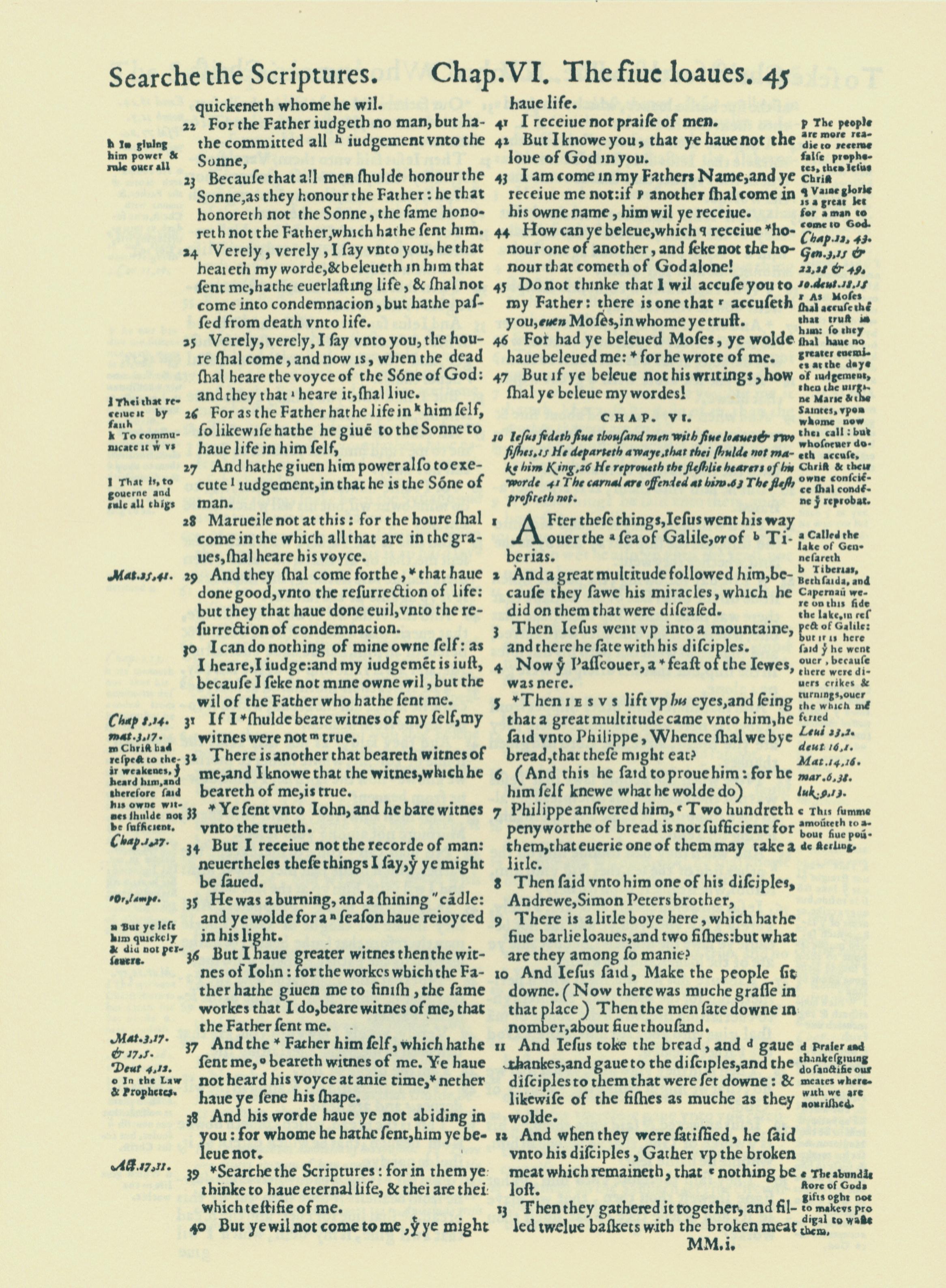 1560年THE BIBLE AND HOLY SCRIPTURES 约翰福音 5 章 22 节到 6 章 13 节