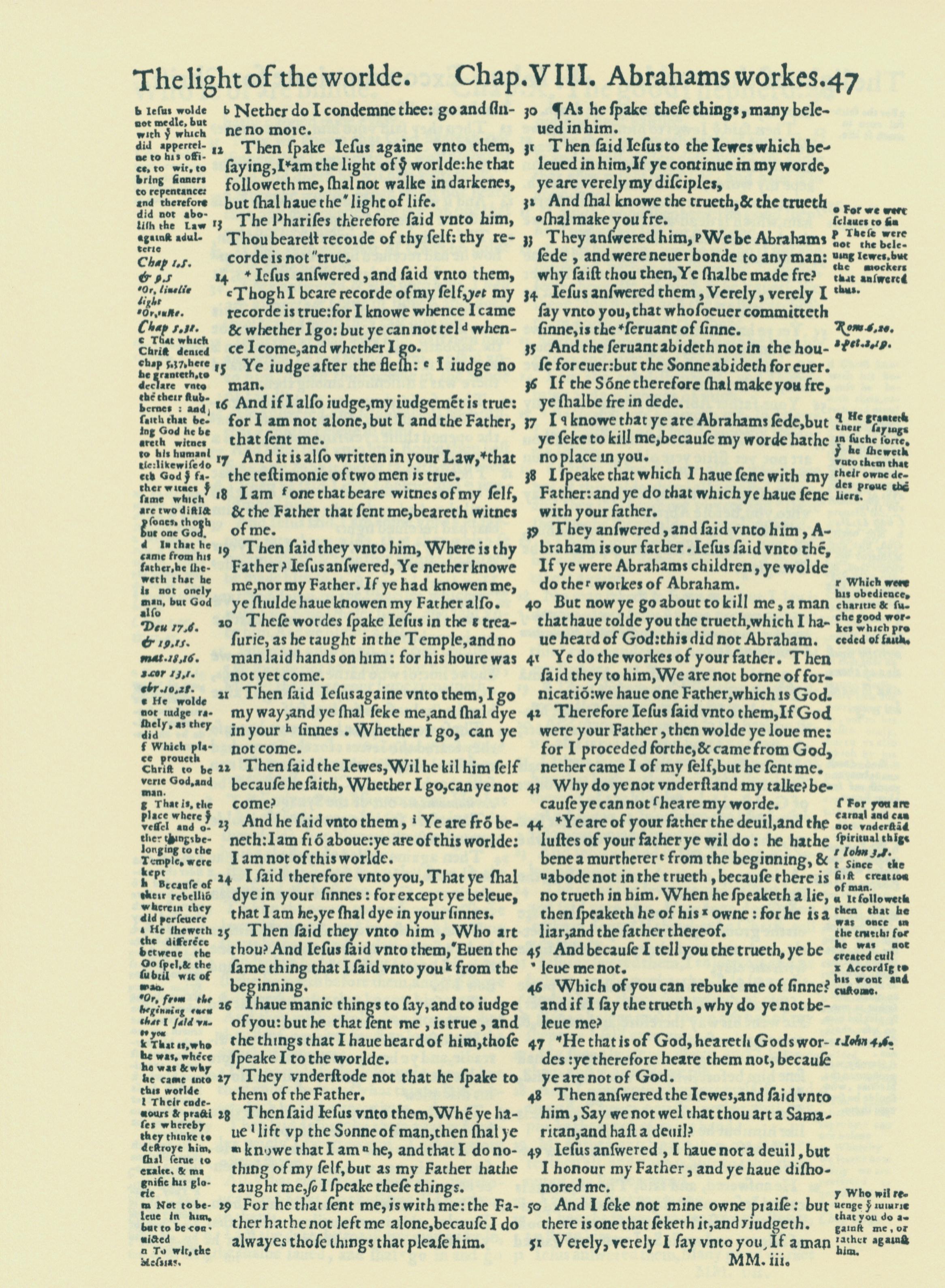 1560年THE BIBLE AND HOLY SCRIPTURES 约翰福音 8 章 12 节到 8 章 51 节