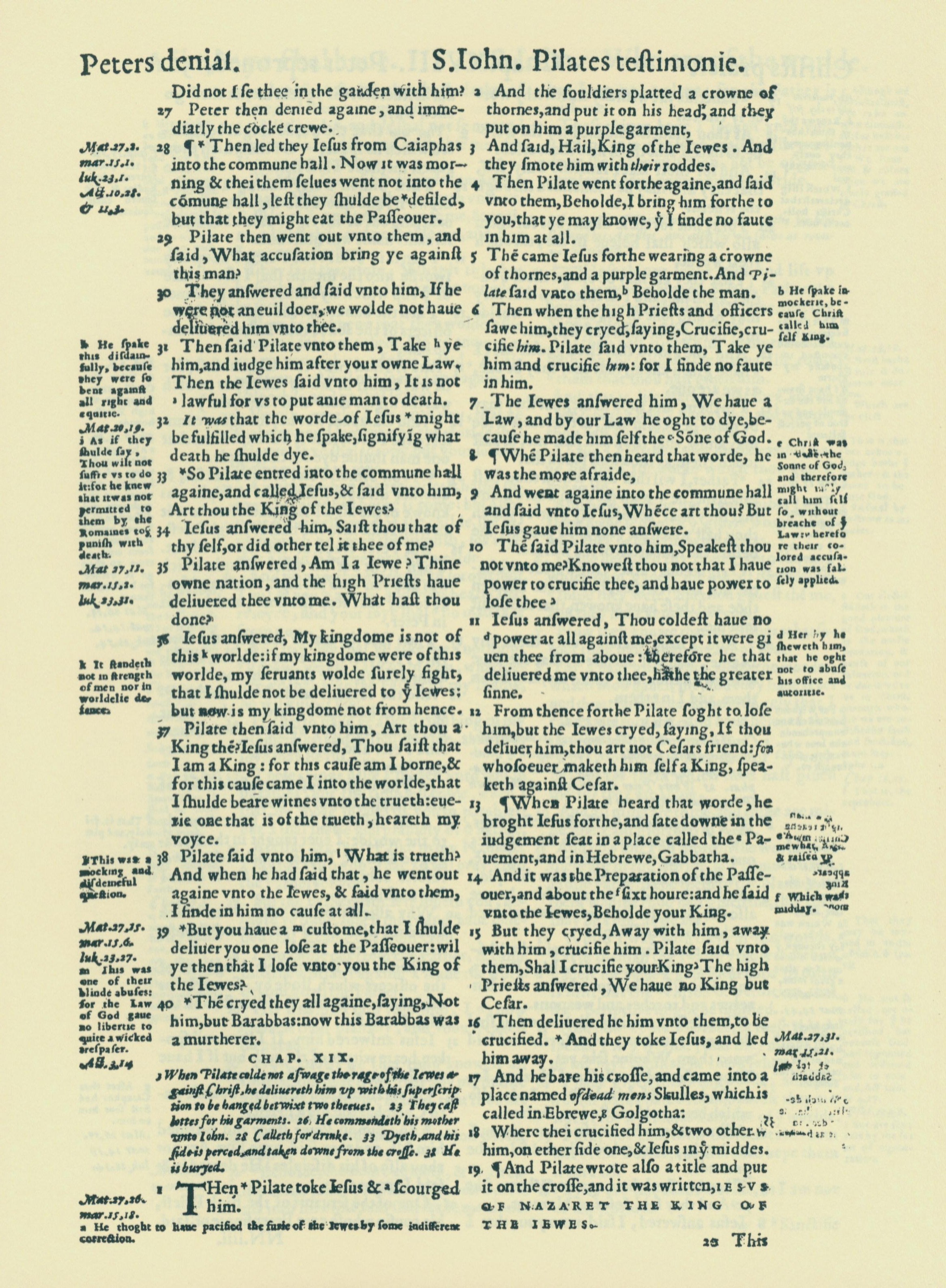 1560年THE BIBLE AND HOLY SCRIPTURES 约翰福音 18 章 27 节到 19 章 19 节