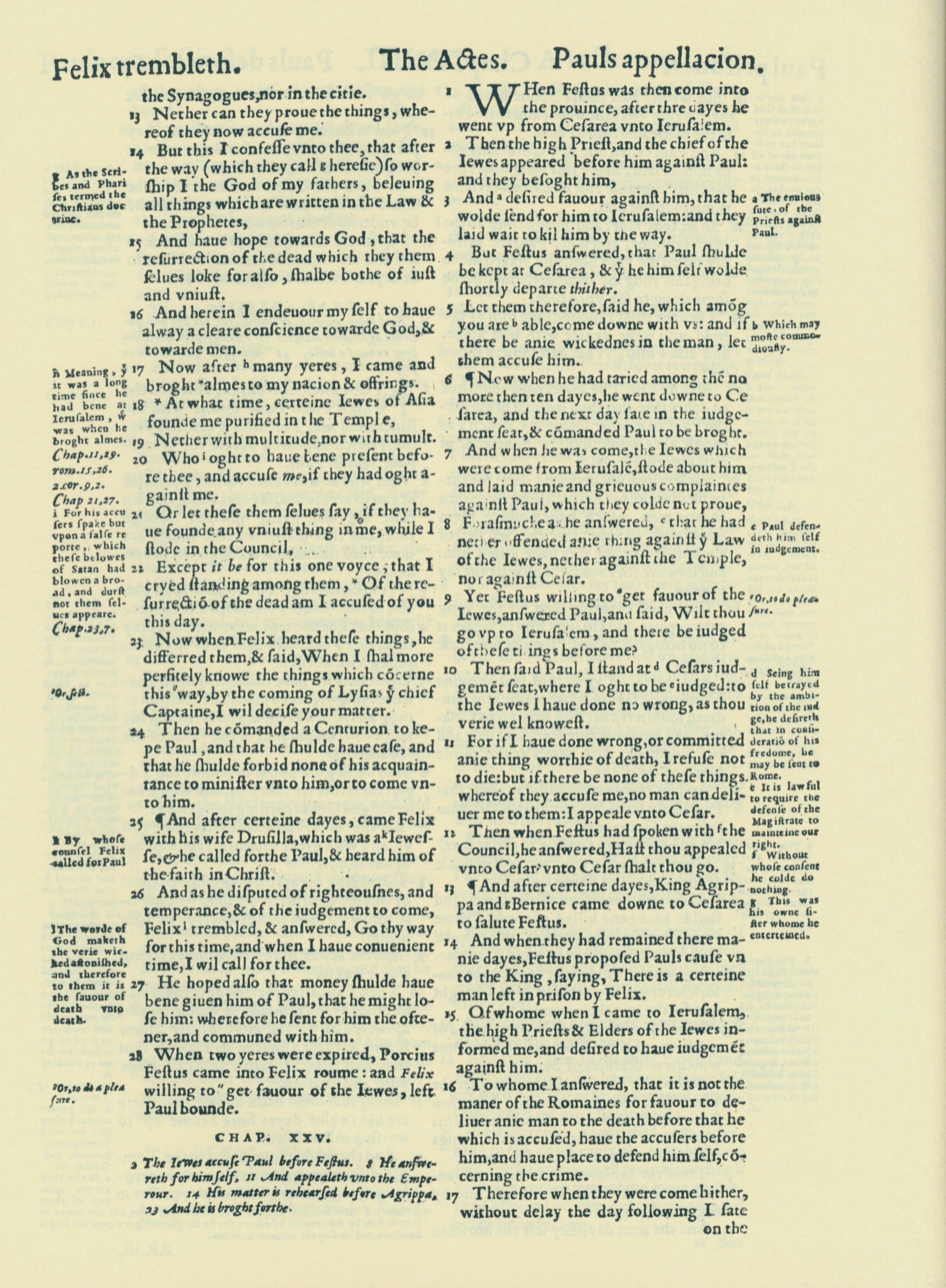 1560年THE BIBLE AND HOLY SCRIPTURES 使徒行传 24 章 13 节到 25 章 17 节
