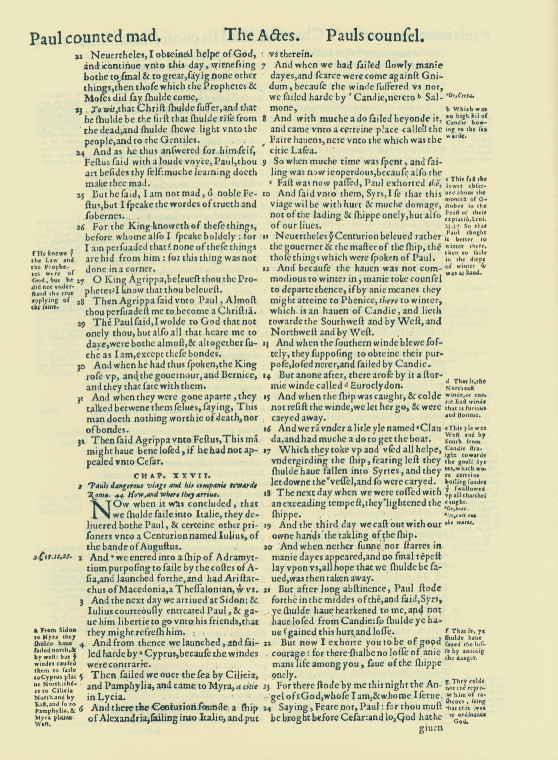 1560年THE BIBLE AND HOLY SCRIPTURES 使徒行传 26 章 22 节到 27 章 24 节