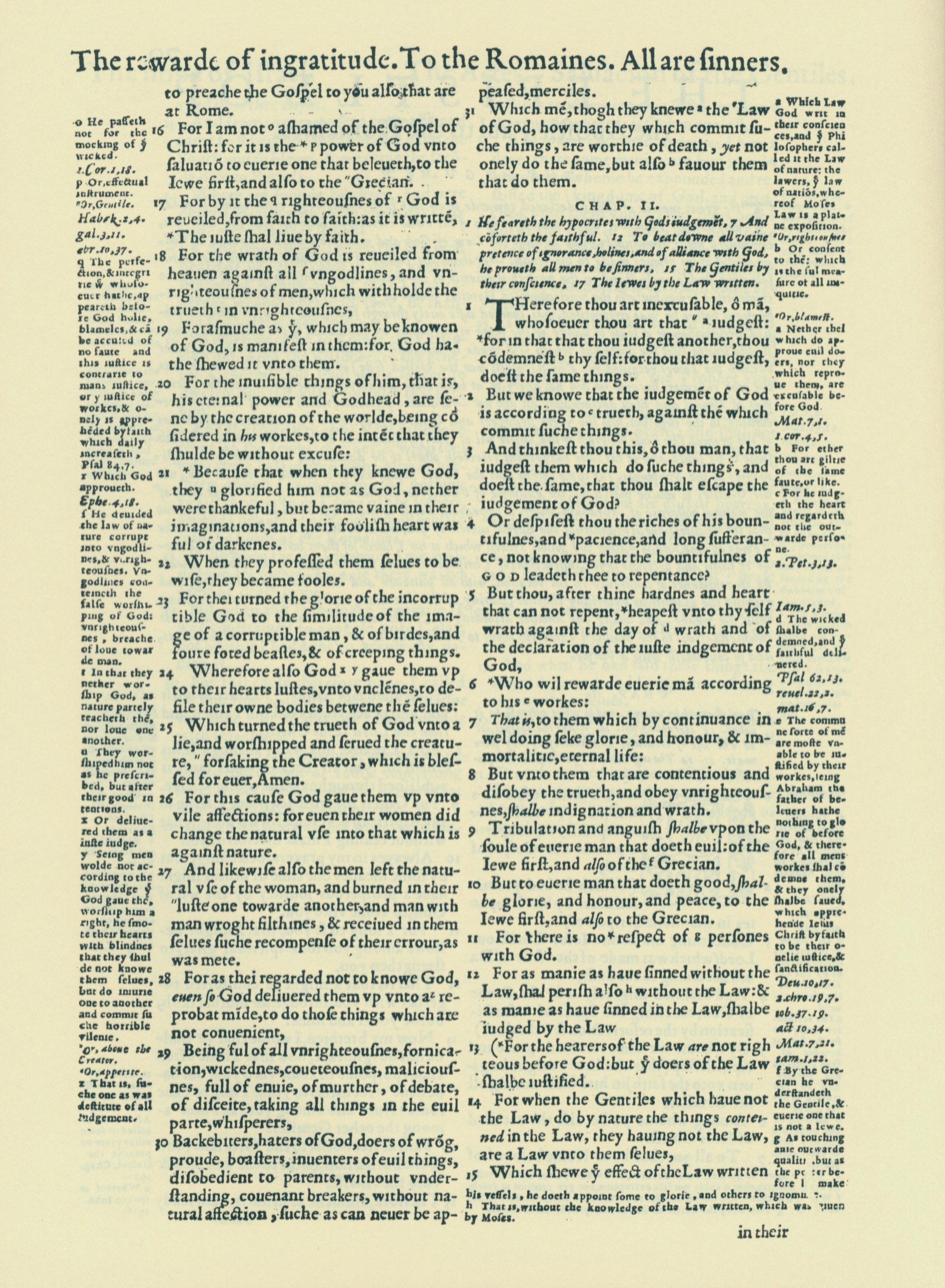 1560年THE BIBLE AND HOLY SCRIPTURES 罗马书 1 章 16 节到 2 章 15 节