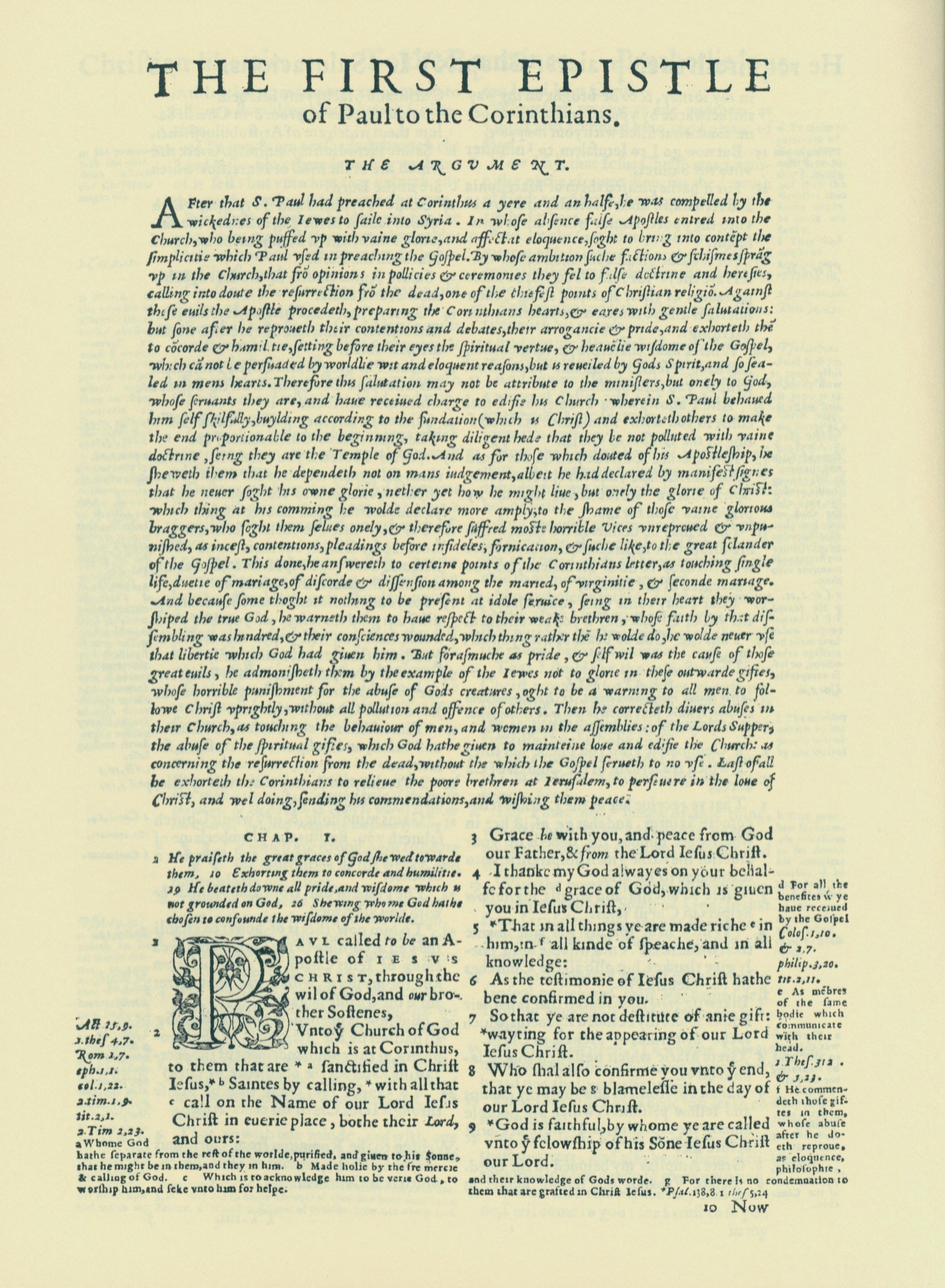 1560年THE BIBLE AND HOLY SCRIPTURES 哥林多前书 1 章 1 节到 1 章 9 节