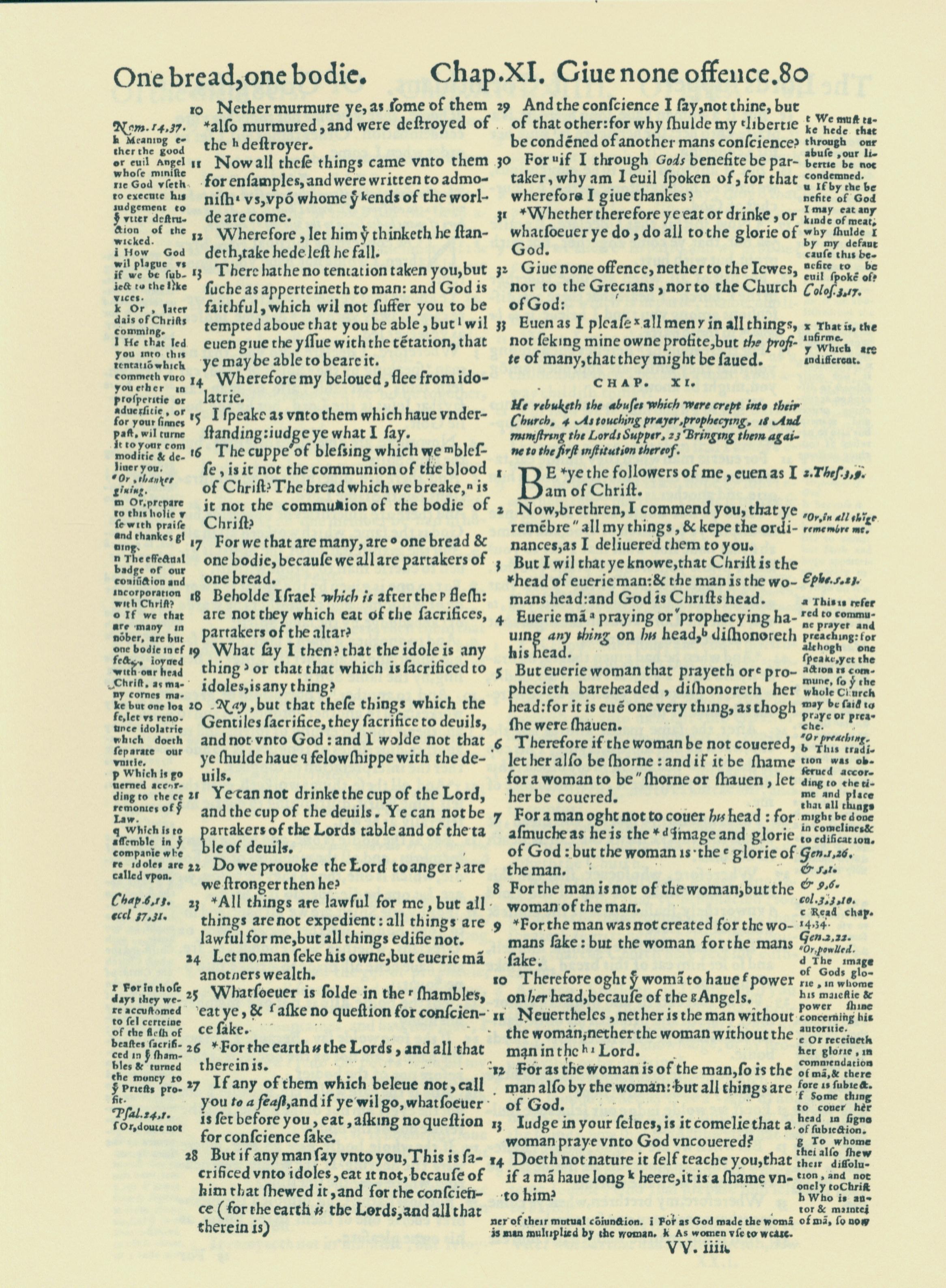 1560年THE BIBLE AND HOLY SCRIPTURES 哥林多前书 10 章 10 节到 11 章 14 节