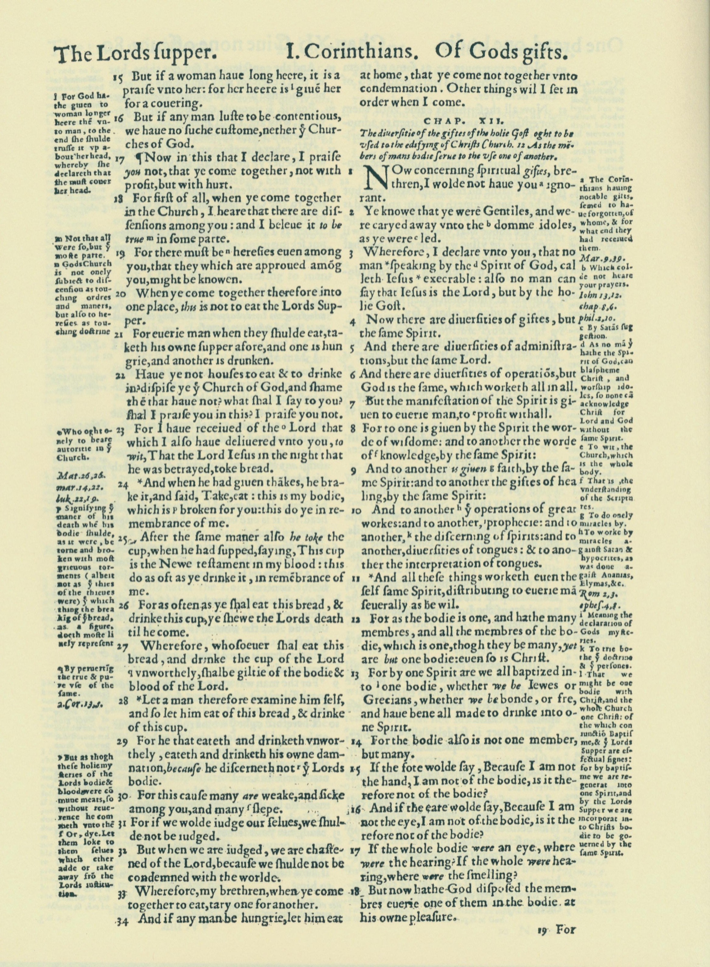 1560年THE BIBLE AND HOLY SCRIPTURES 哥林多前书 11 章 15 节到 12 章 18 节
