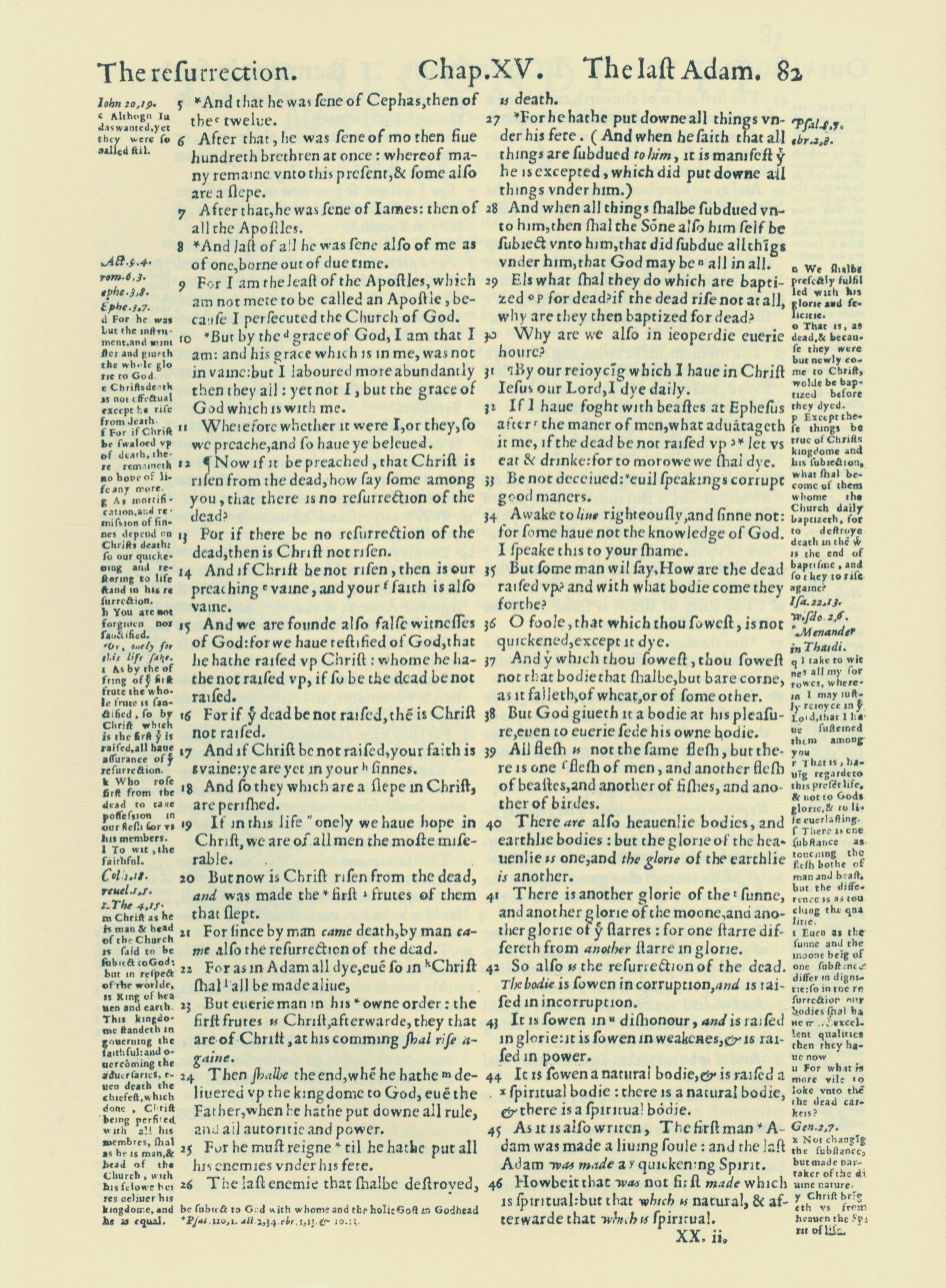 1560年THE BIBLE AND HOLY SCRIPTURES 哥林多前书 15 章 5 节到 15 章 46 节