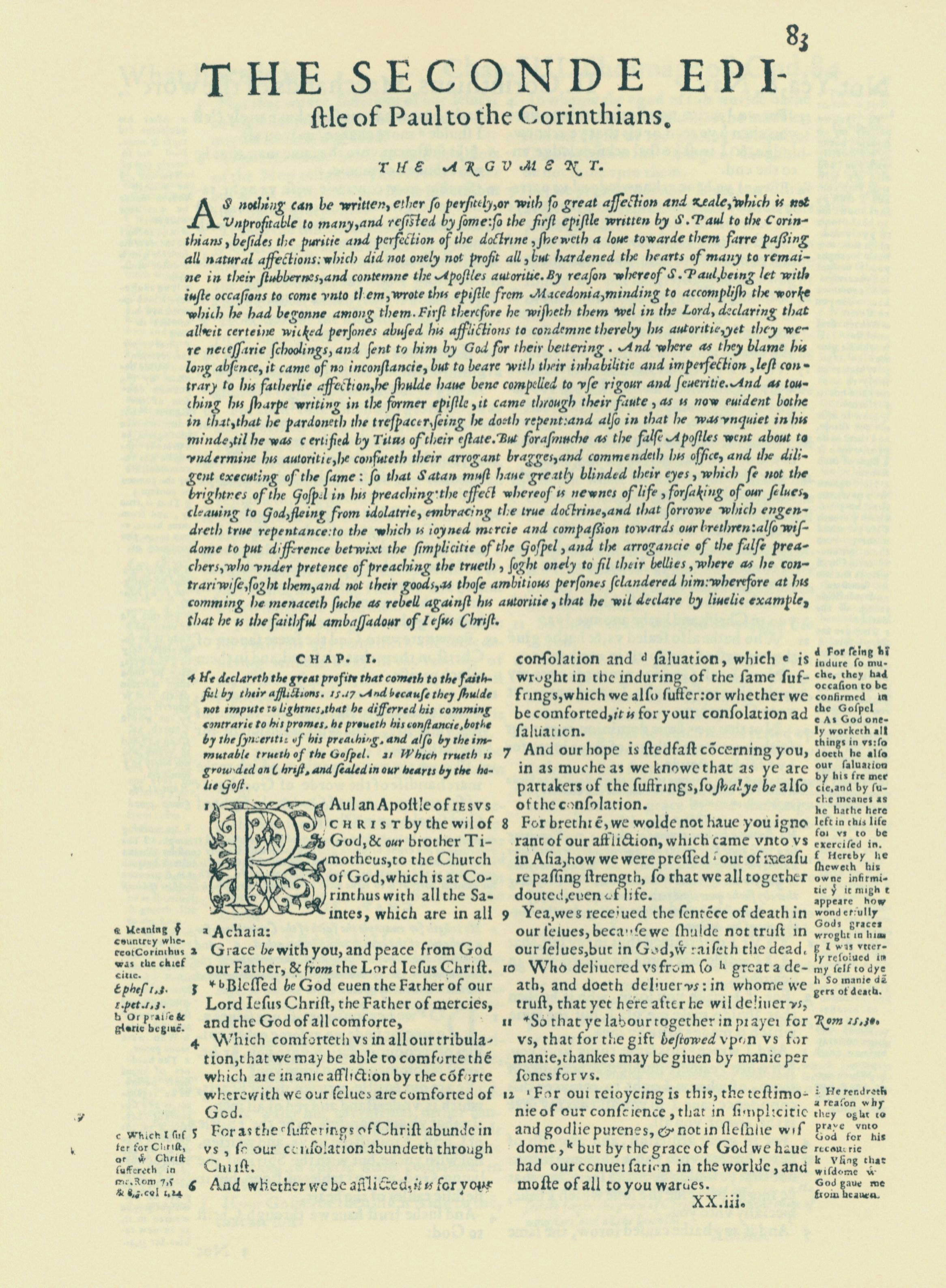 1560年THE BIBLE AND HOLY SCRIPTURES 哥林多后书 1 章 1 节到 1 章 12 节
