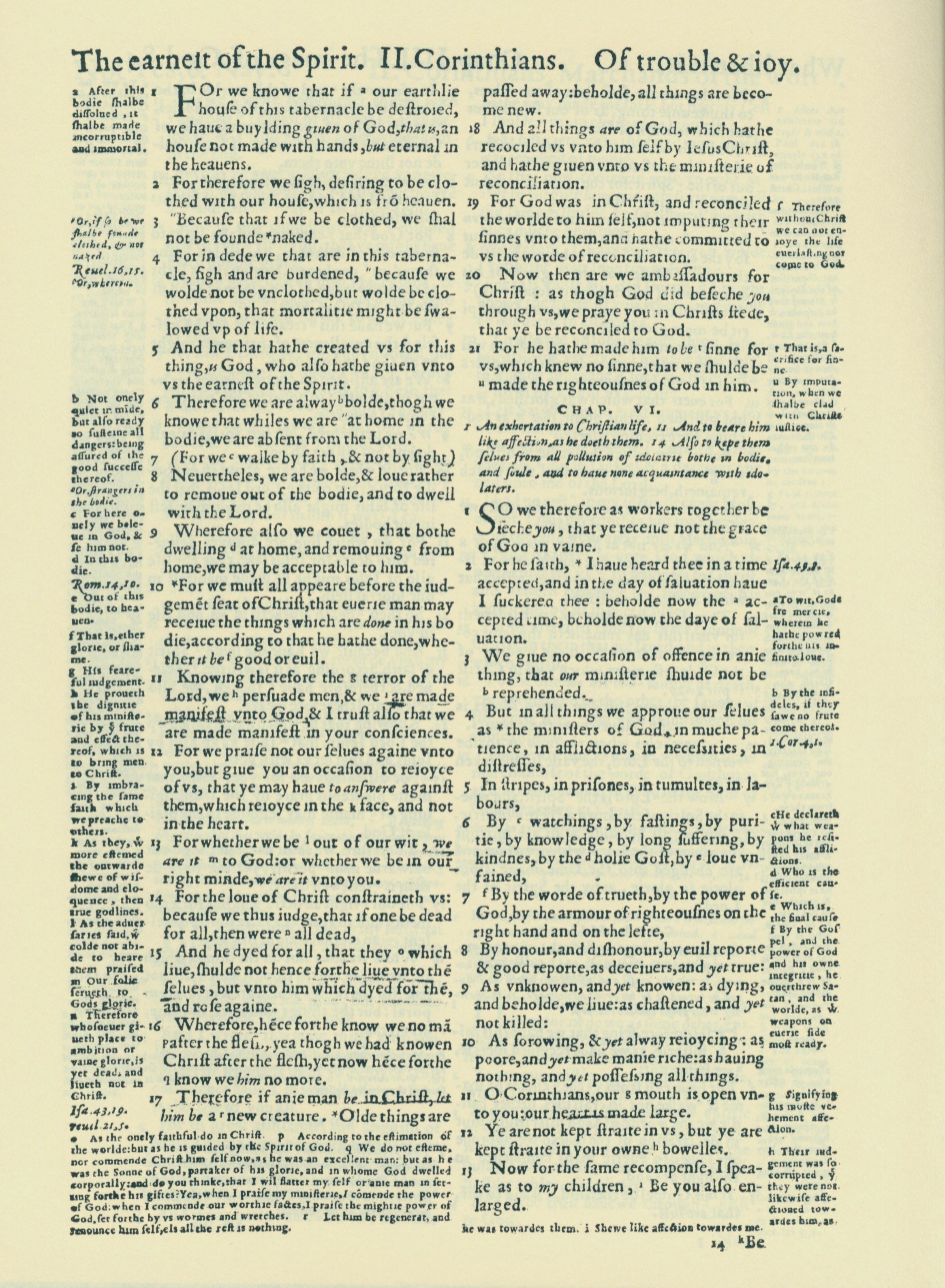 1560年THE BIBLE AND HOLY SCRIPTURES 哥林多后书 5 章 1 节到 6 章 13 节