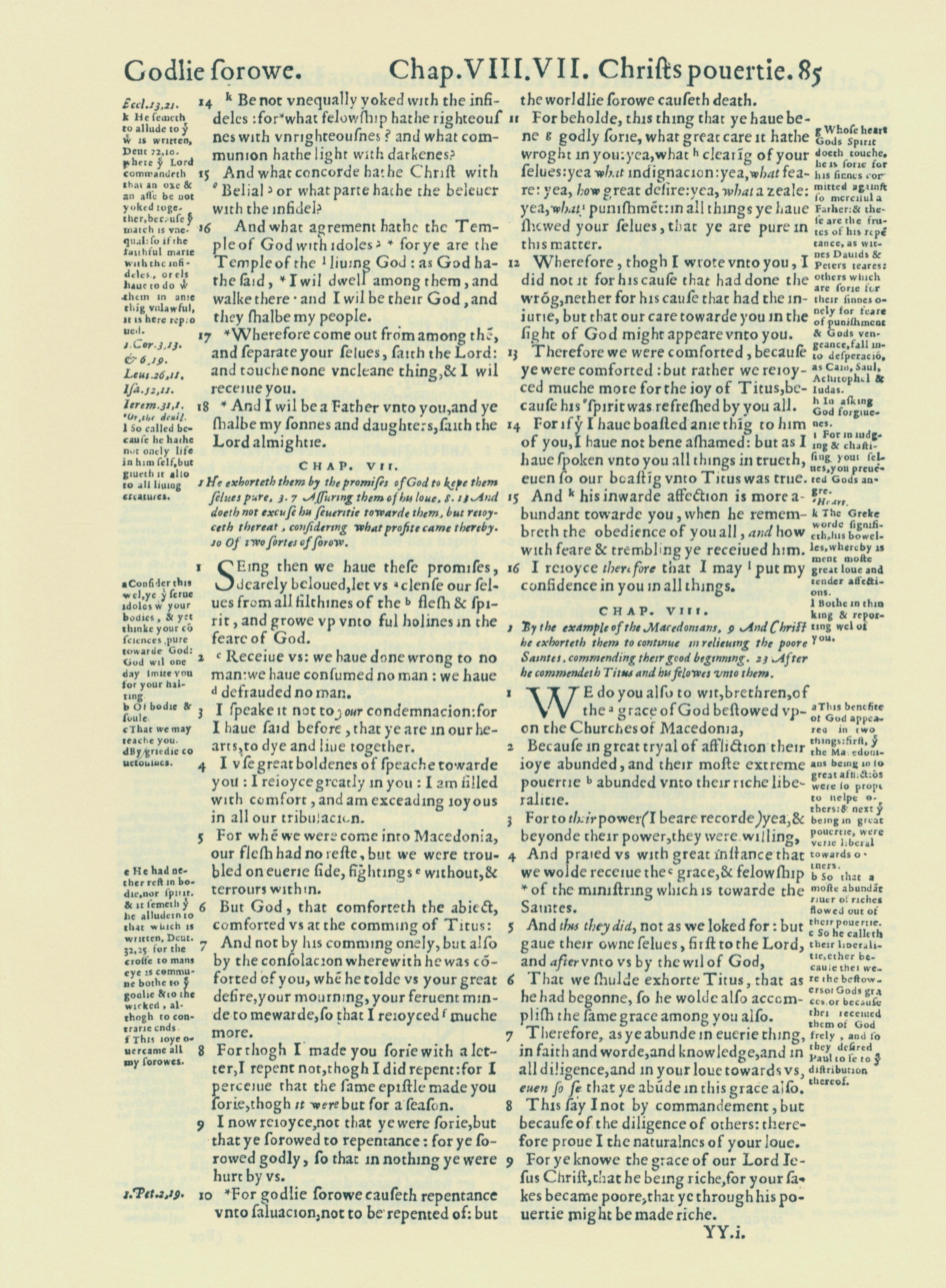 1560年THE BIBLE AND HOLY SCRIPTURES 哥林多后书 6 章 14 节到 8 章 9 节