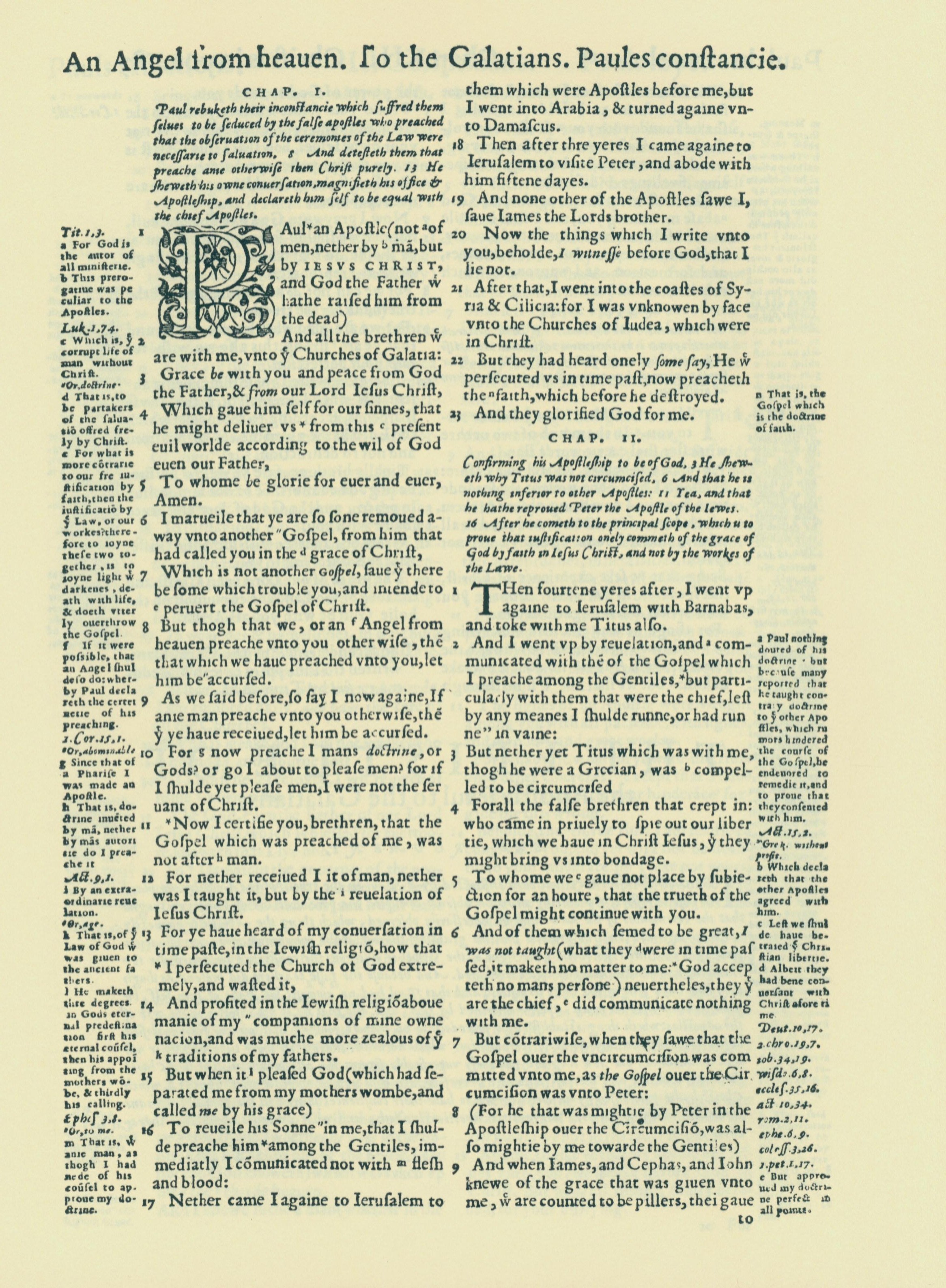 1560年THE BIBLE AND HOLY SCRIPTURES 加拉太书 1 章 1 节到 2 章 9 节