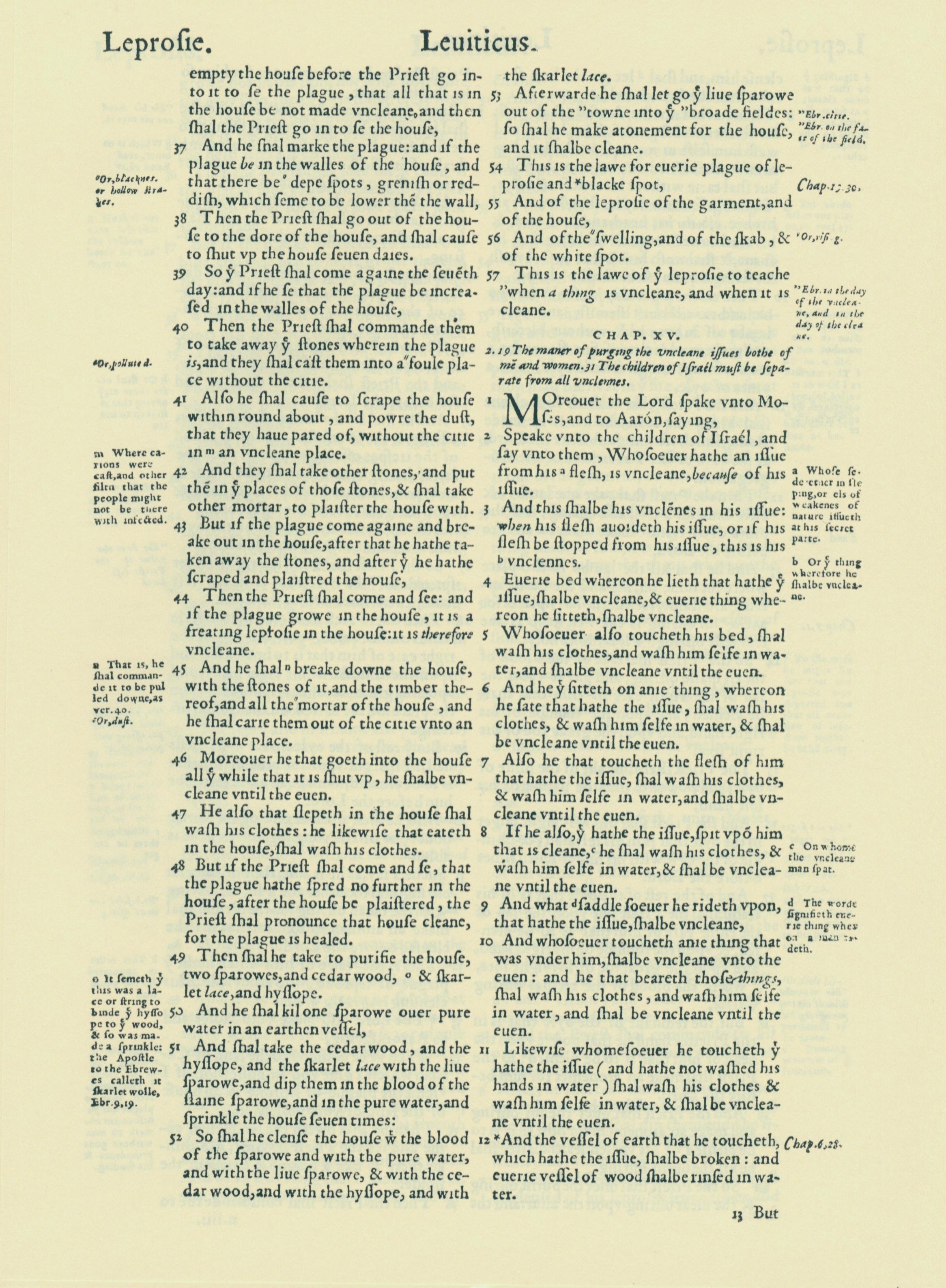 1560年THE BIBLE AND HOLY SCRIPTURES 利未记 14 章 37 节到 15 章 12 节