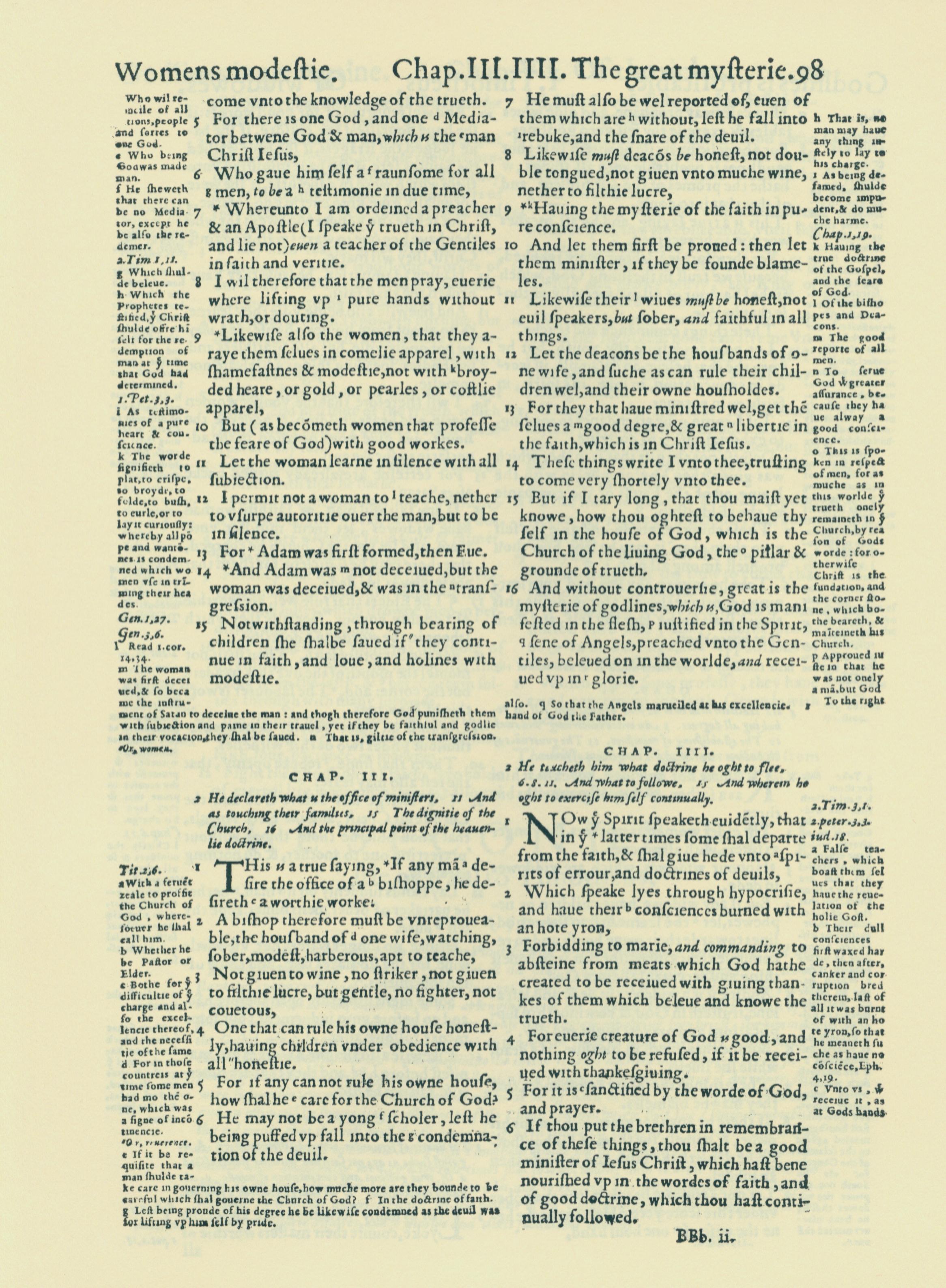 1560年THE BIBLE AND HOLY SCRIPTURES 提摩太前书 2 章 5 节到 4 章 6 节
