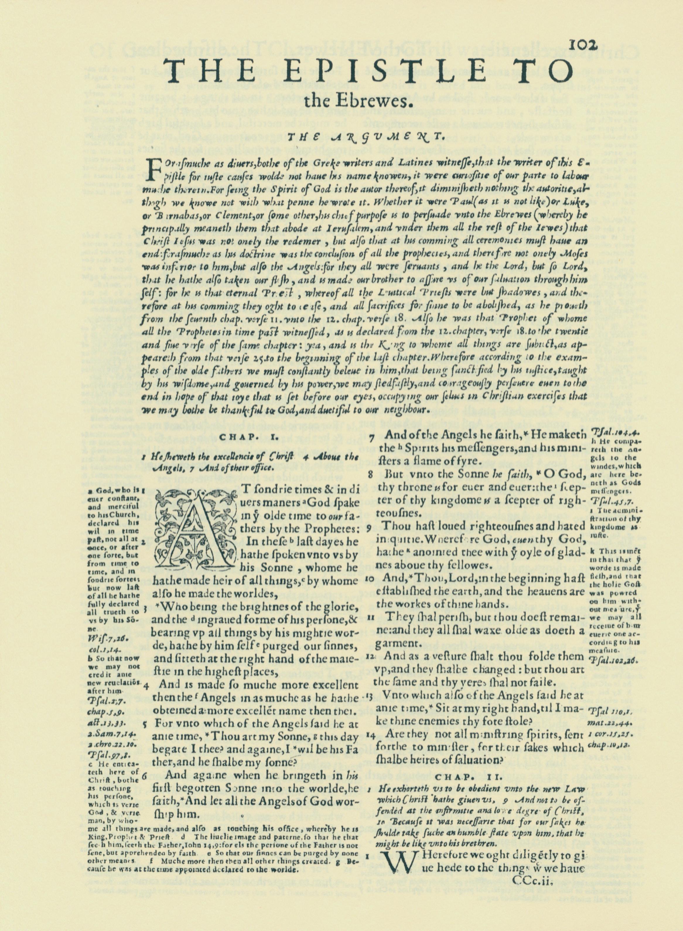1560年THE BIBLE AND HOLY SCRIPTURES 希伯来书 1 章 1 节到 2 章 1 节