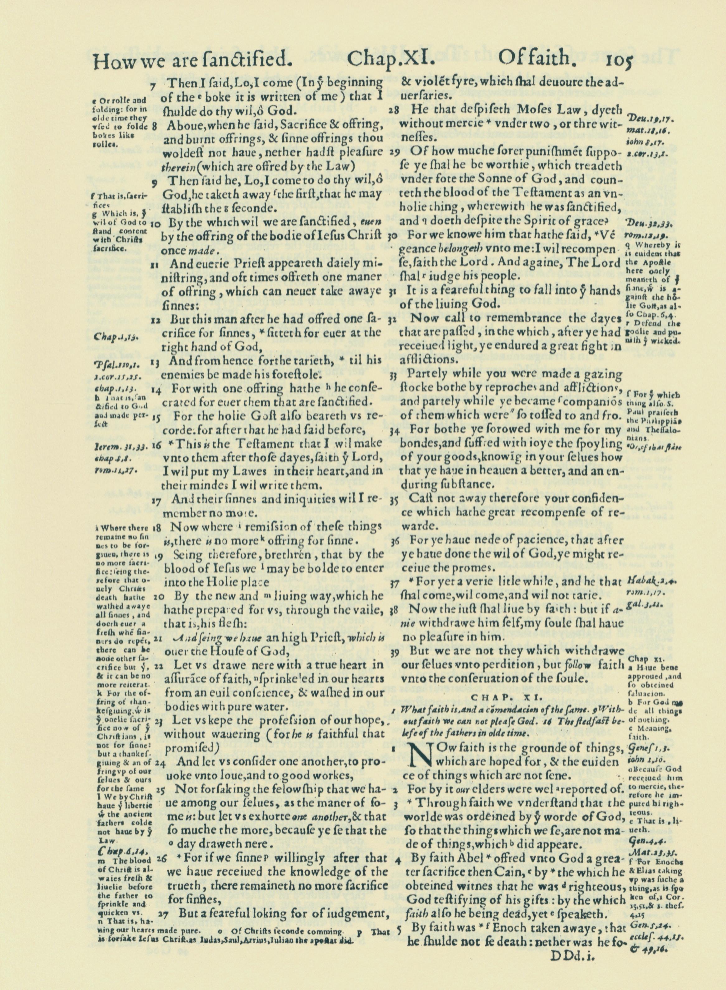 1560年THE BIBLE AND HOLY SCRIPTURES 希伯来书 10 章 7 节到 11 章 5 节
