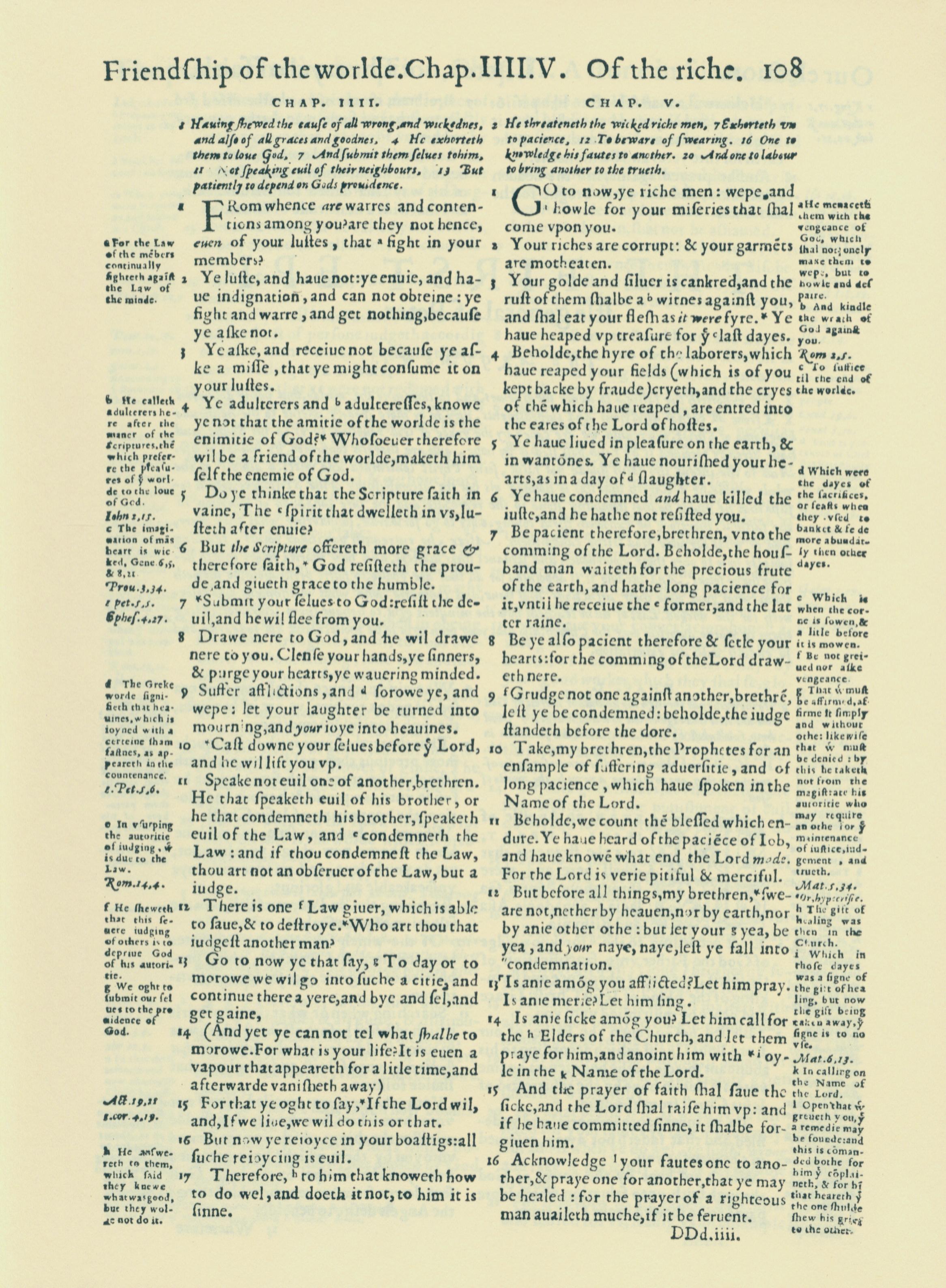 1560年THE BIBLE AND HOLY SCRIPTURES 雅各书 4 章 1 节到 5 章 16 节