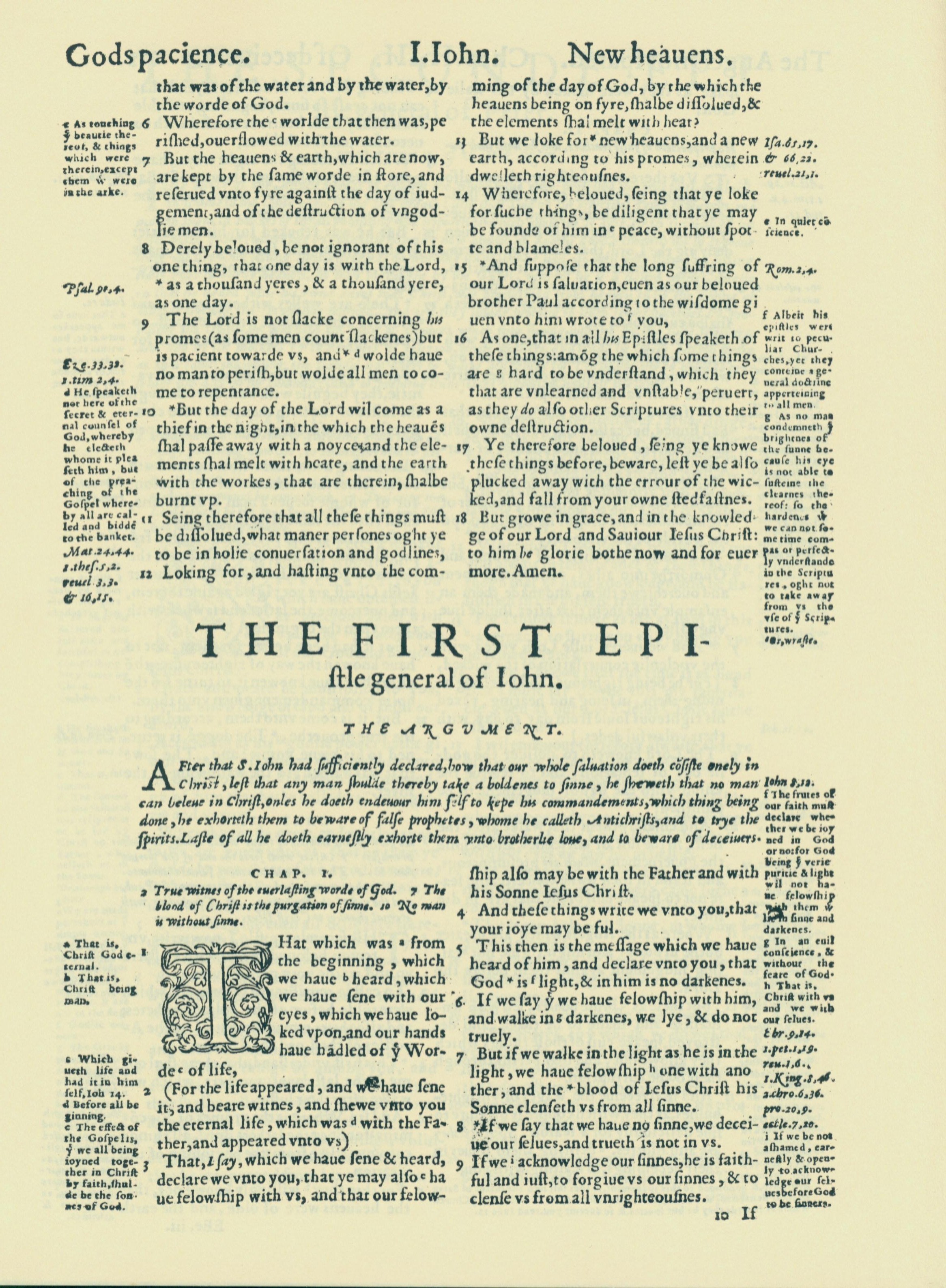 1560年THE BIBLE AND HOLY SCRIPTURES 约翰一书 1 章 1 节到 1 章 9 节