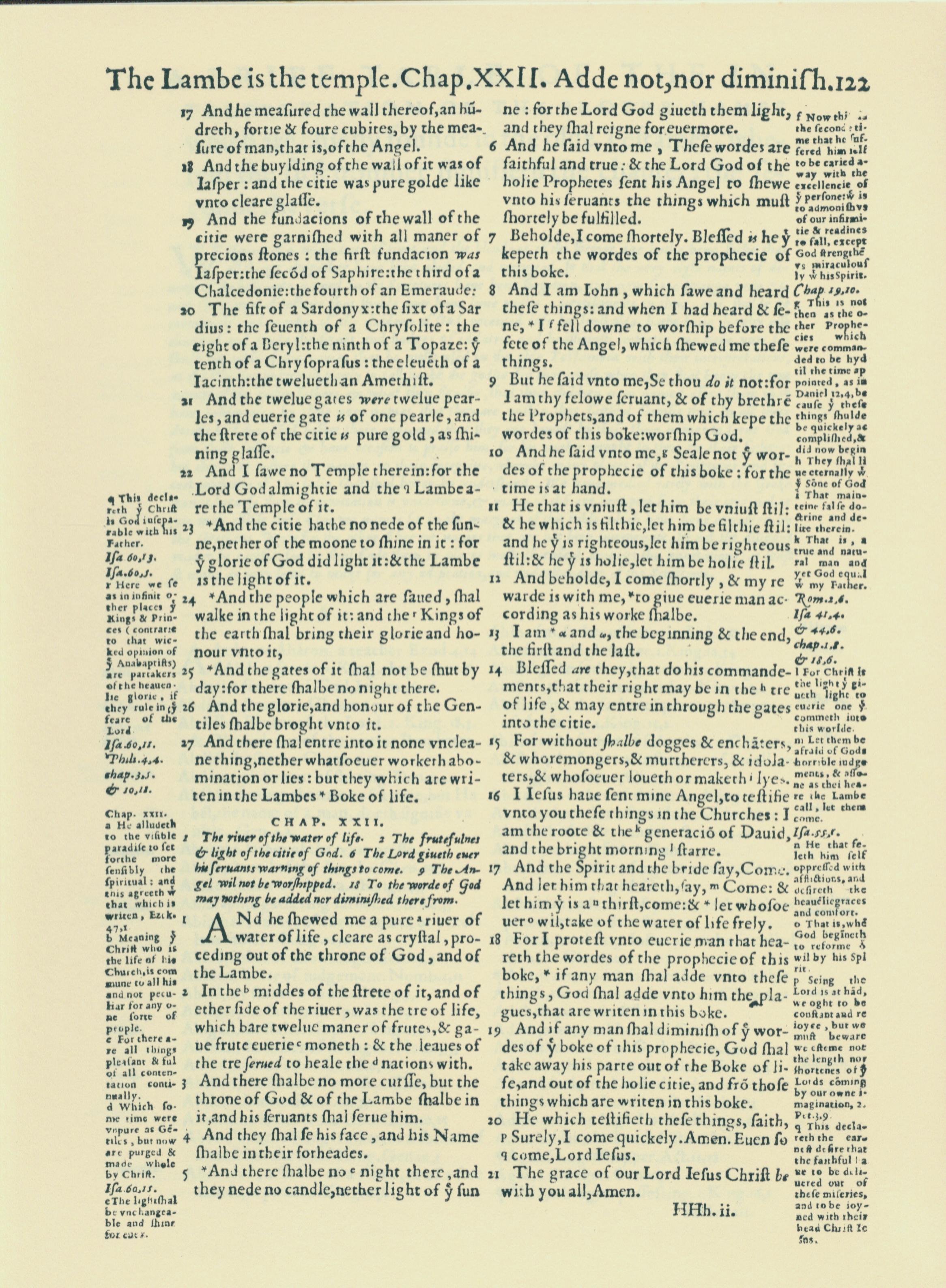 1560年THE BIBLE AND HOLY SCRIPTURES 启示录 21 章 17 节到 22 章 21 节
