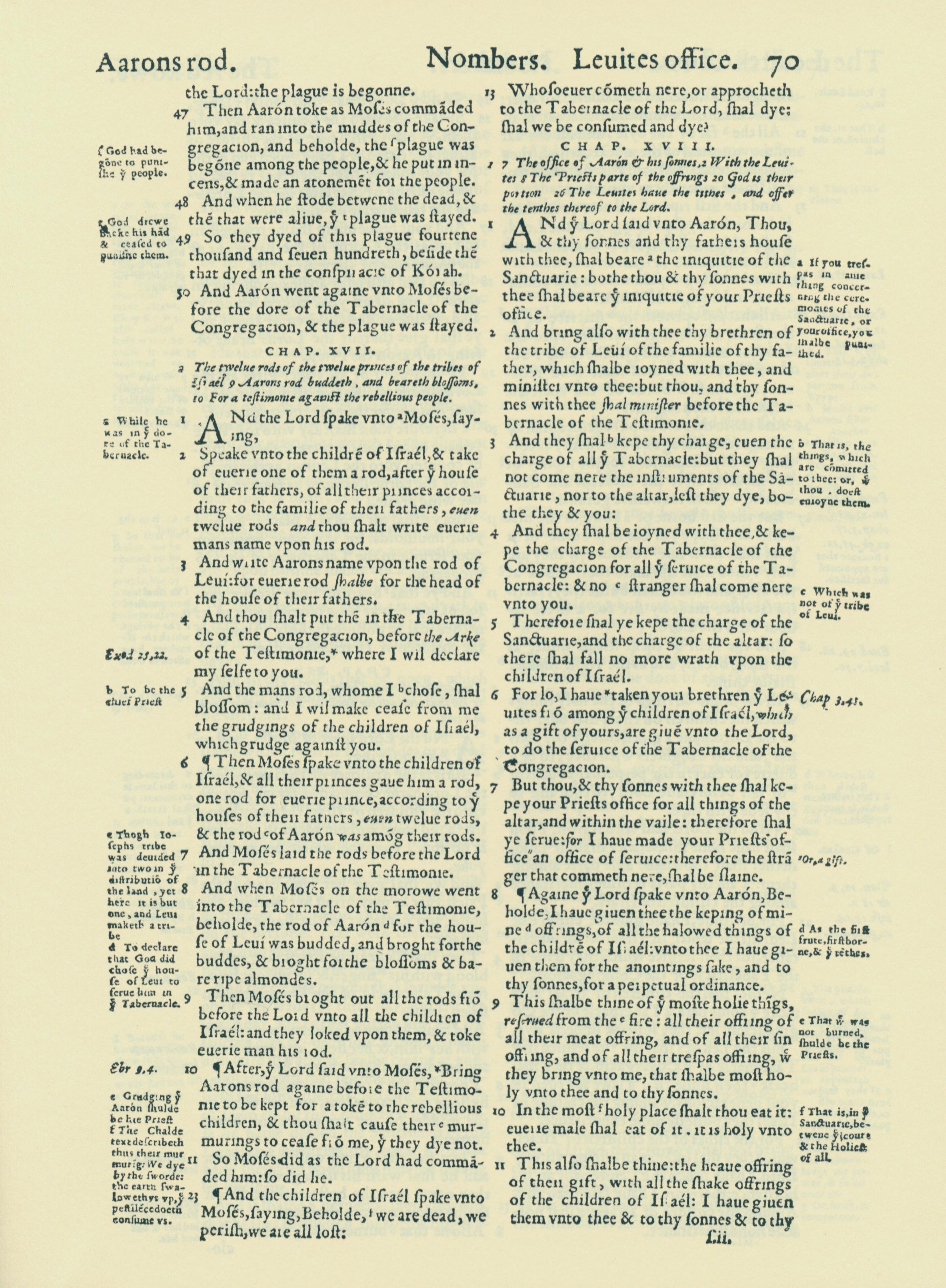 1560年THE BIBLE AND HOLY SCRIPTURES 民数记 16 章 47 节到 18 章 11 节
