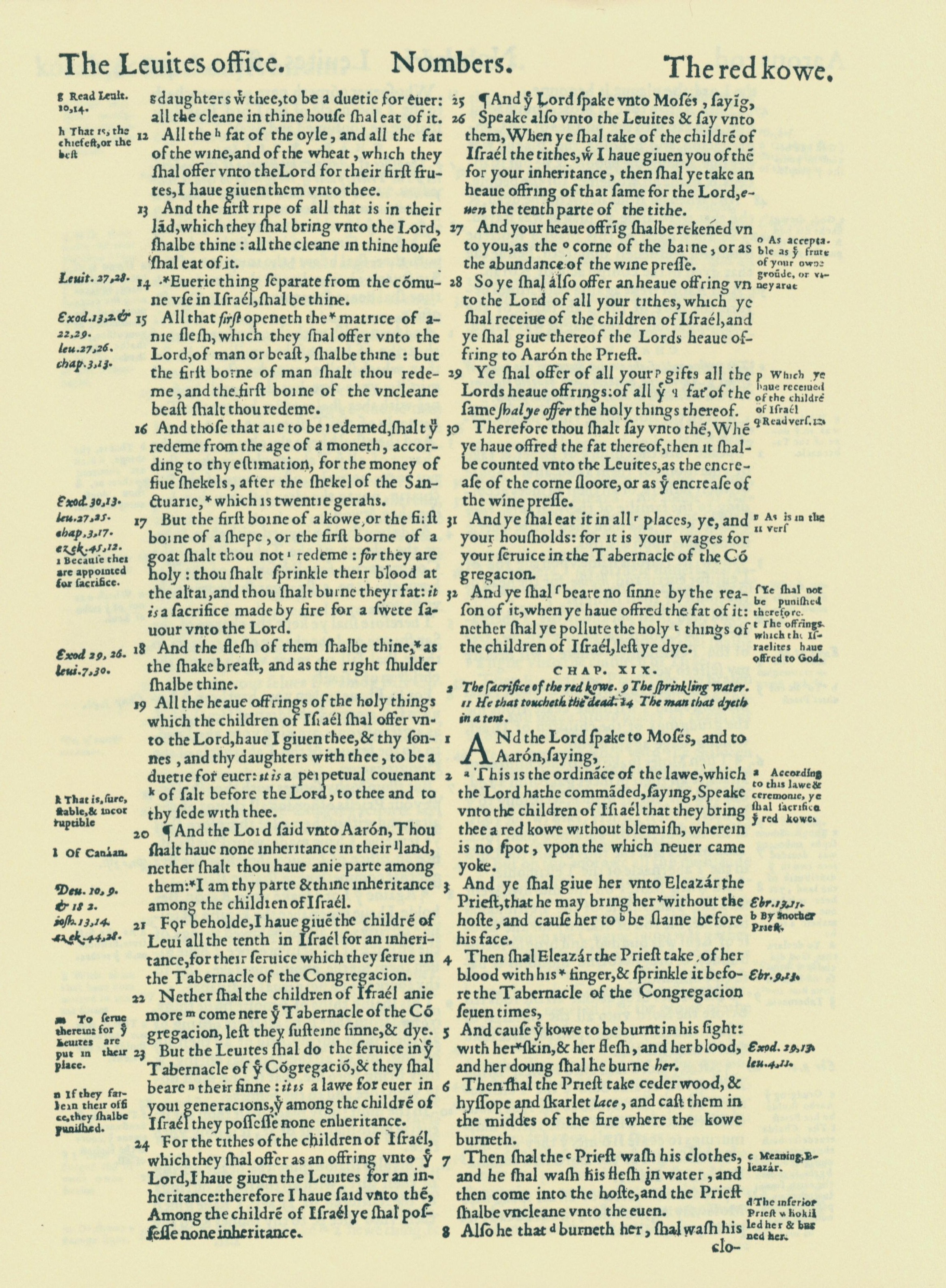 1560年THE BIBLE AND HOLY SCRIPTURES 民数记 18 章 12 节到 19 章 8 节