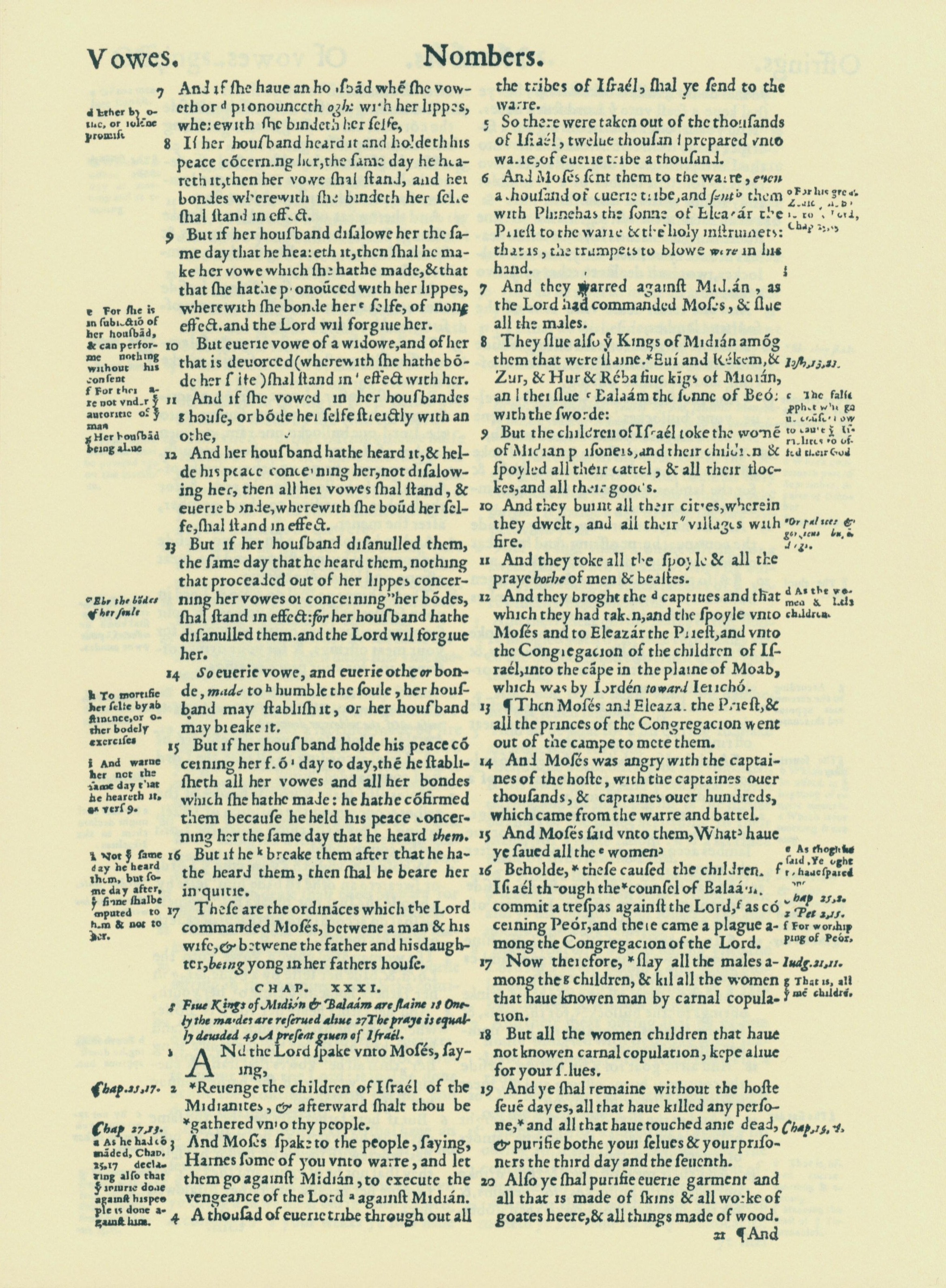 1560年THE BIBLE AND HOLY SCRIPTURES 民数记 30 章 7 节到 31 章 20 节