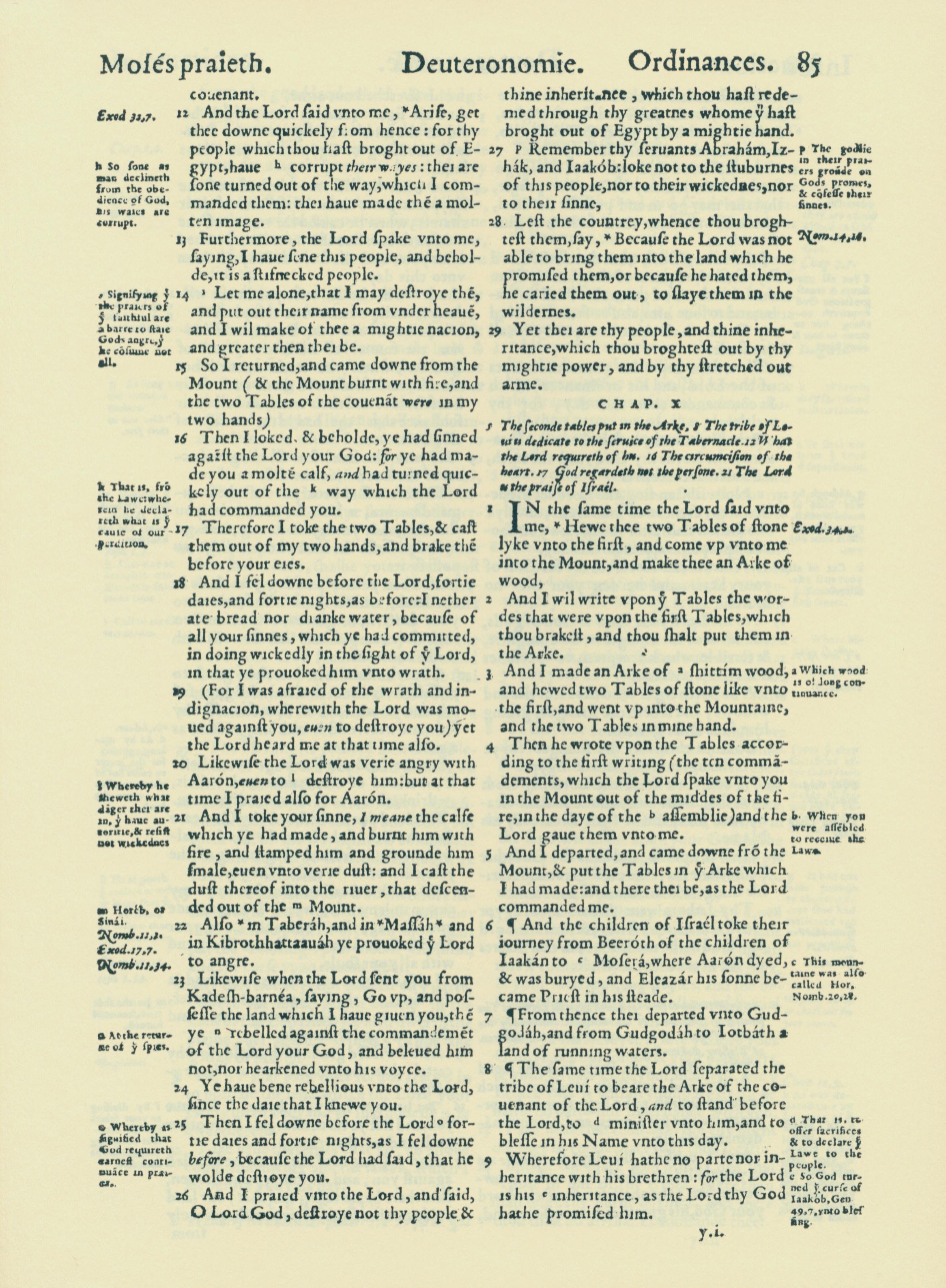 1560年THE BIBLE AND HOLY SCRIPTURES 申命记 9 章 12 节到 10 章 9 节