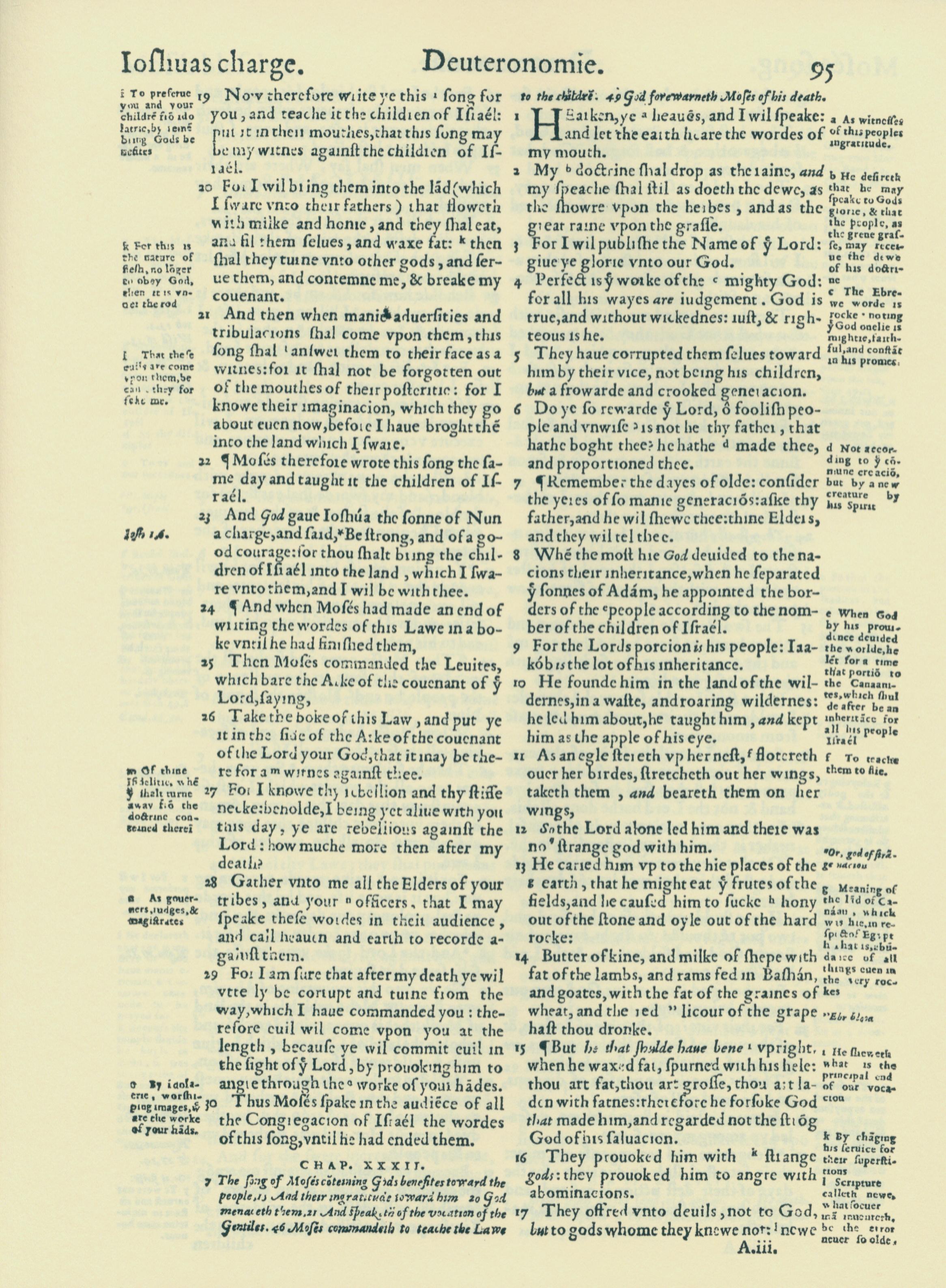 1560年THE BIBLE AND HOLY SCRIPTURES 申命记 31 章 19 节到 32 章 17 节