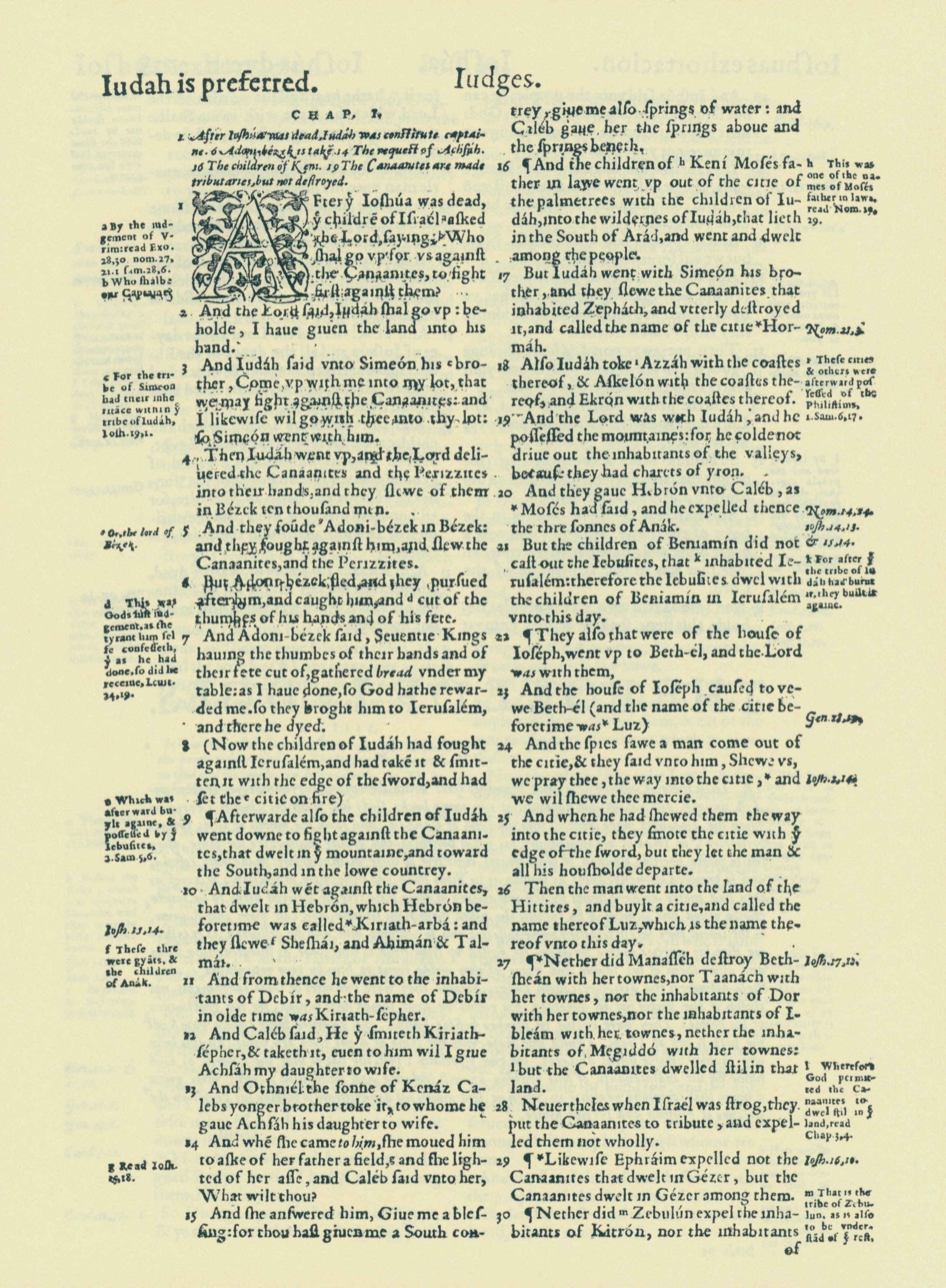 1560年THE BIBLE AND HOLY SCRIPTURES 士师记 1 章 1 节到 1 章 30 节