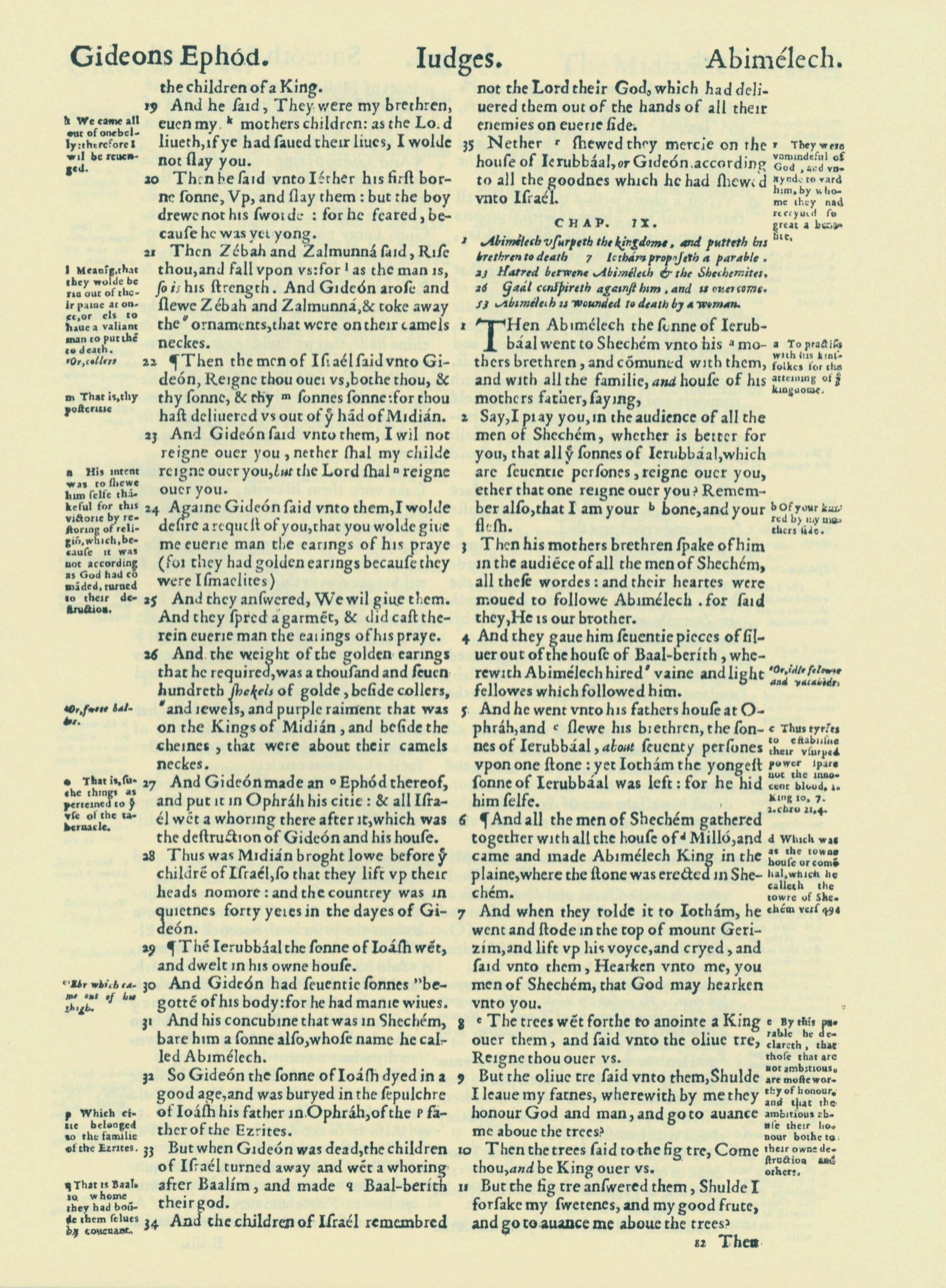 1560年THE BIBLE AND HOLY SCRIPTURES 士师记 8 章 19 节到 9 章 11 节