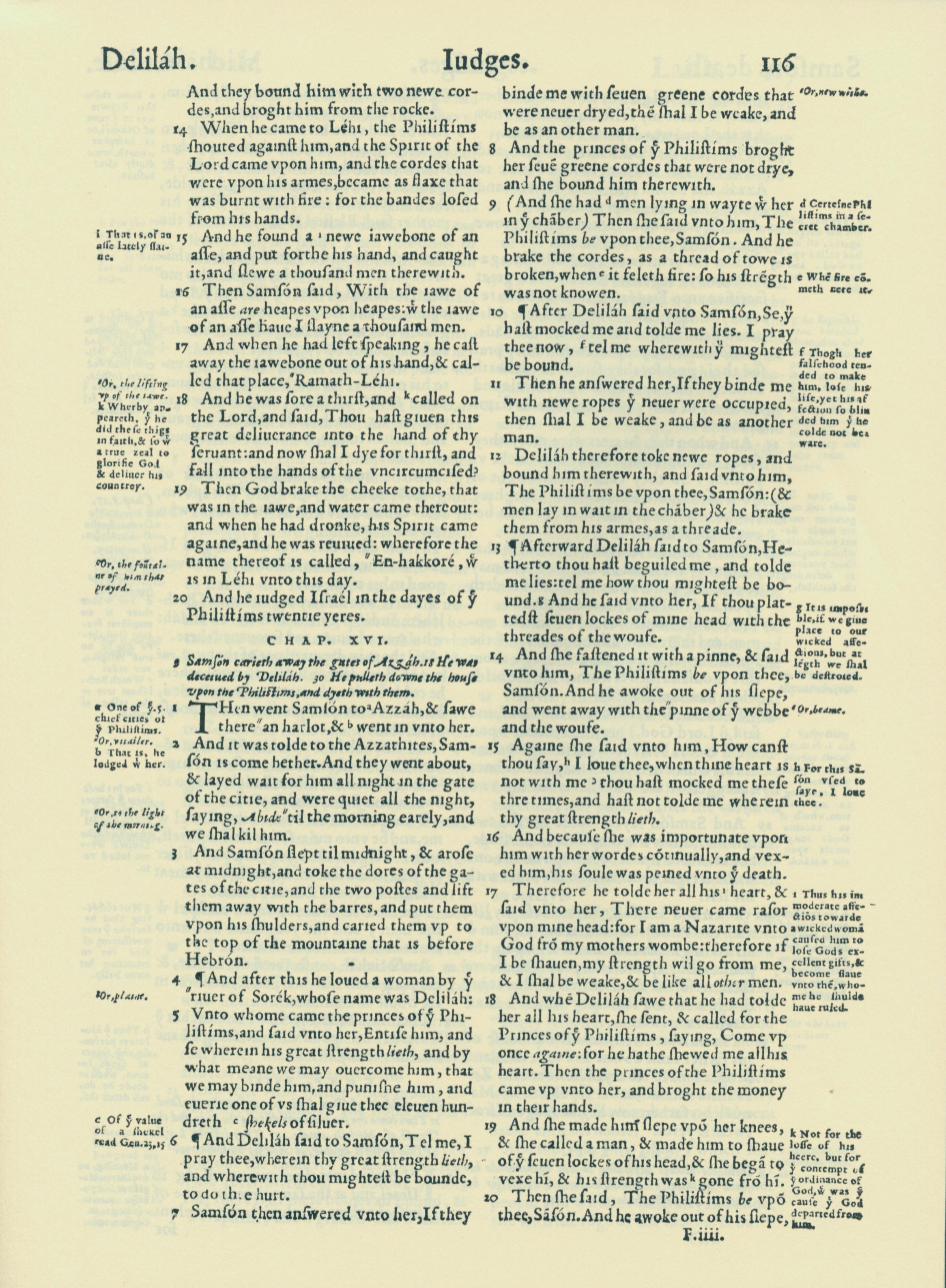1560年THE BIBLE AND HOLY SCRIPTURES 士师记 15 章 14 节到 16 章 20 节