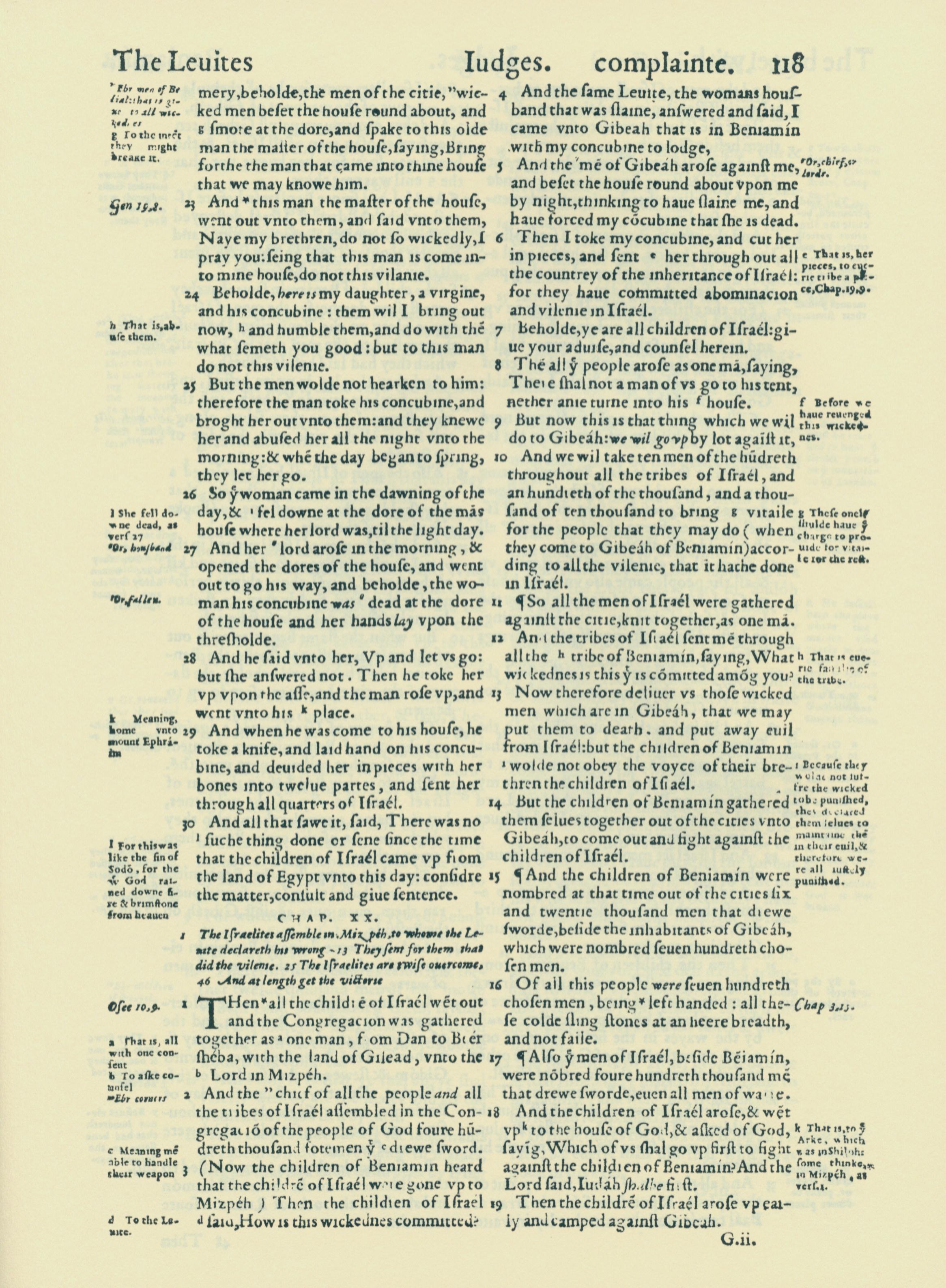 1560年THE BIBLE AND HOLY SCRIPTURES 士师记 19 章 23 节到 20 章 19 节