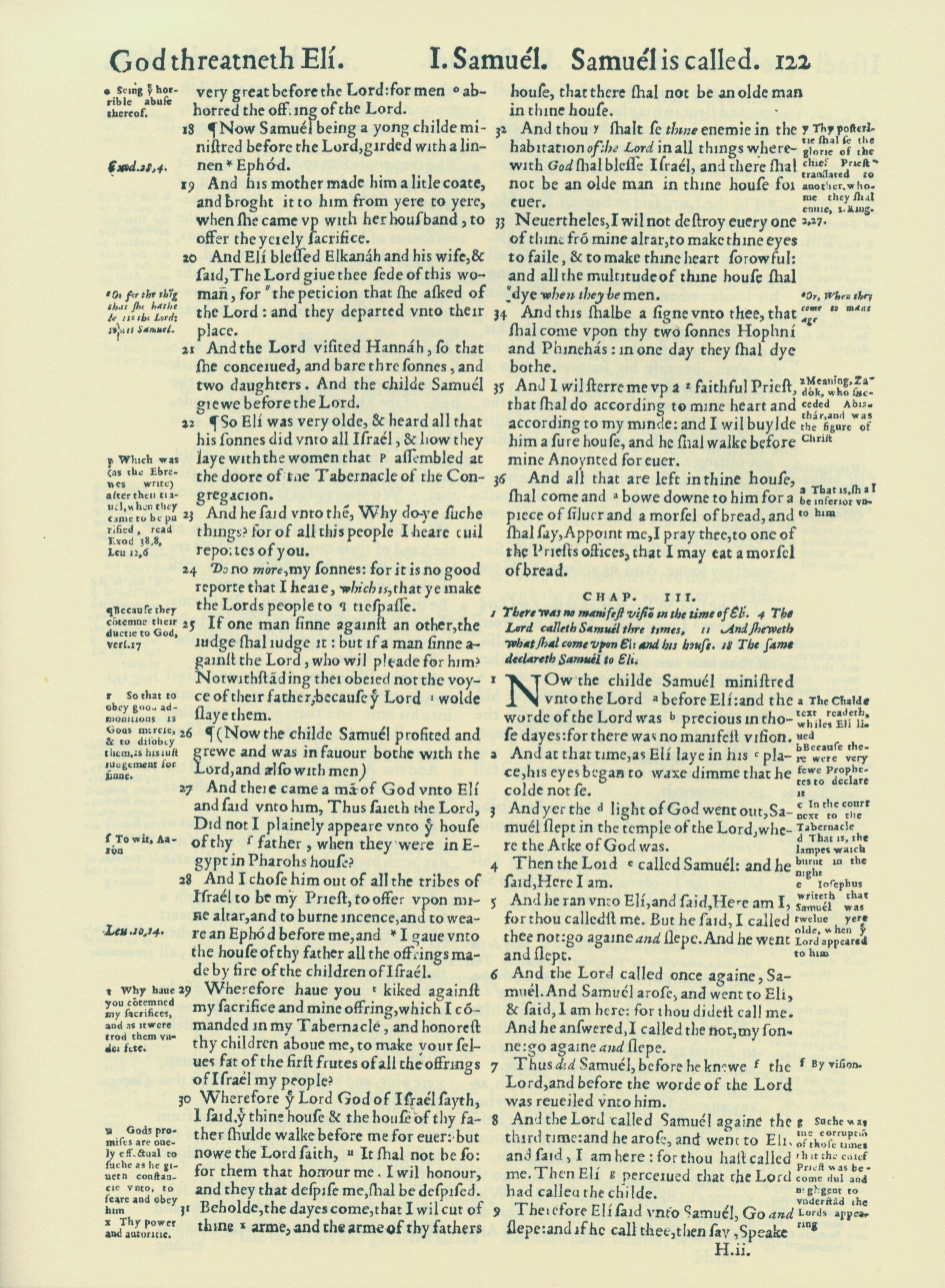 1560年THE BIBLE AND HOLY SCRIPTURES 撒母耳记上 2 章 18 节到 3 章 9 节