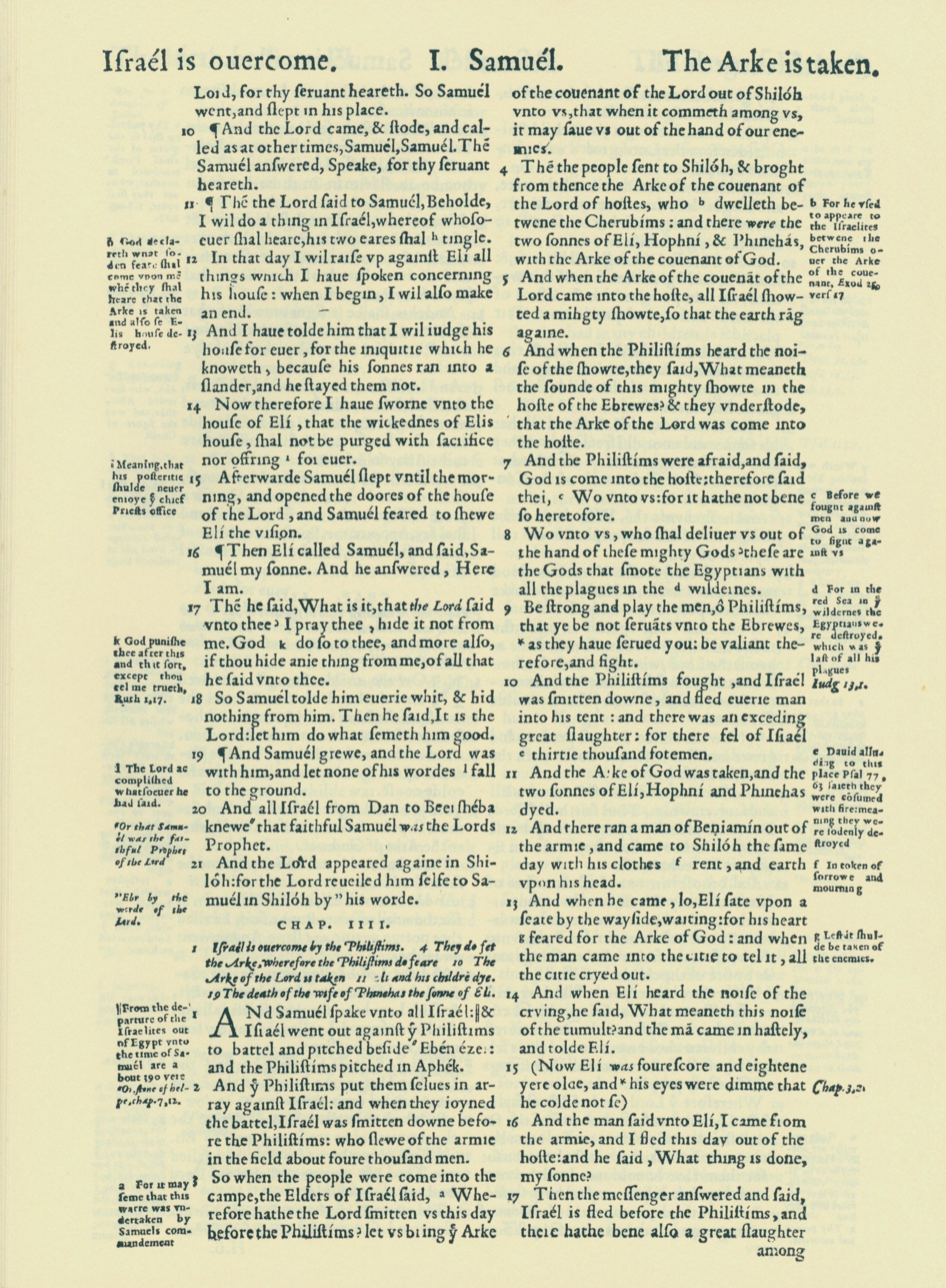1560年THE BIBLE AND HOLY SCRIPTURES 撒母耳记上 3 章 10 节到 4 章 17 节