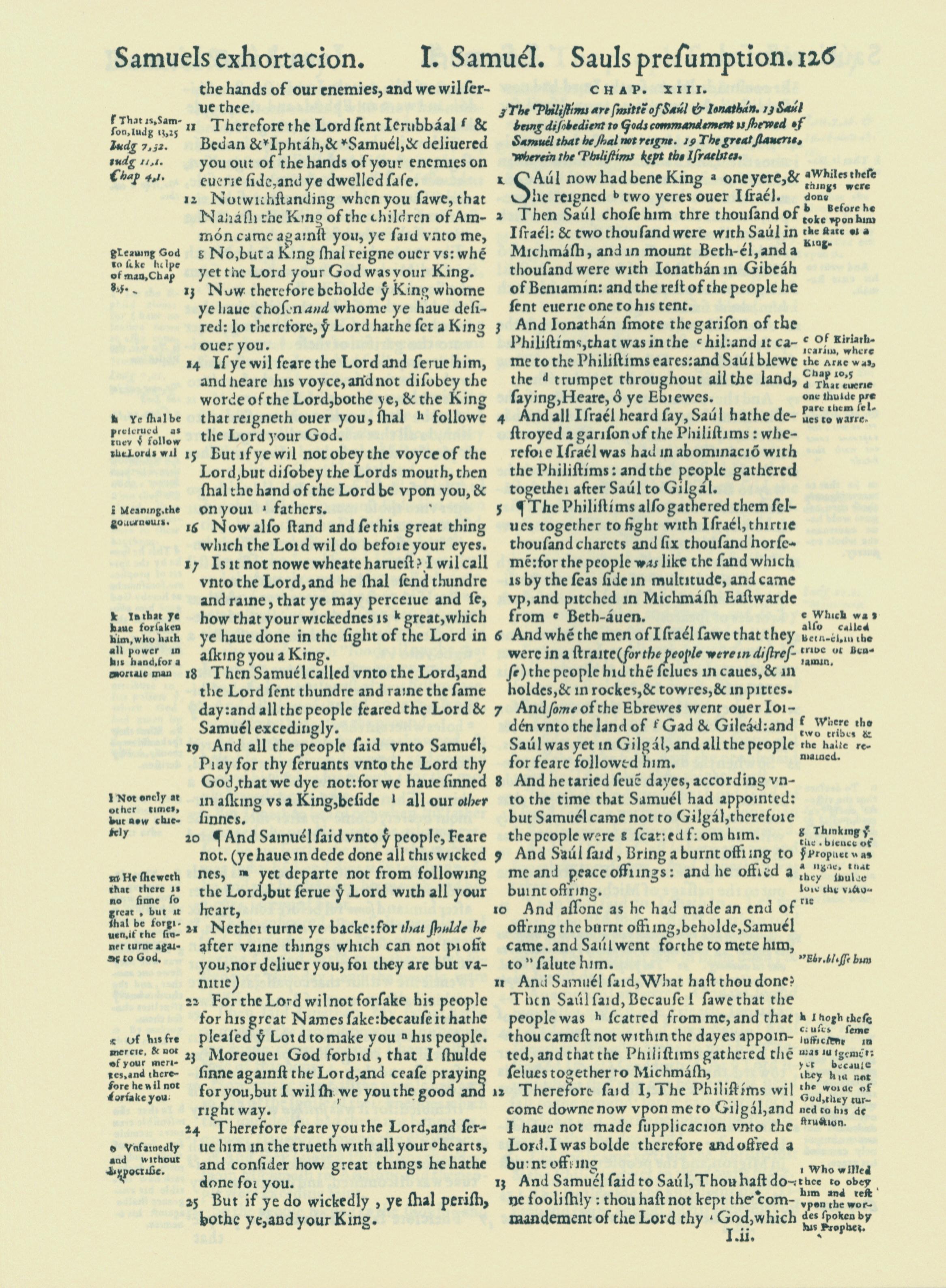 1560年THE BIBLE AND HOLY SCRIPTURES 撒母耳记上 12 章 11 节到 13 章 13 节