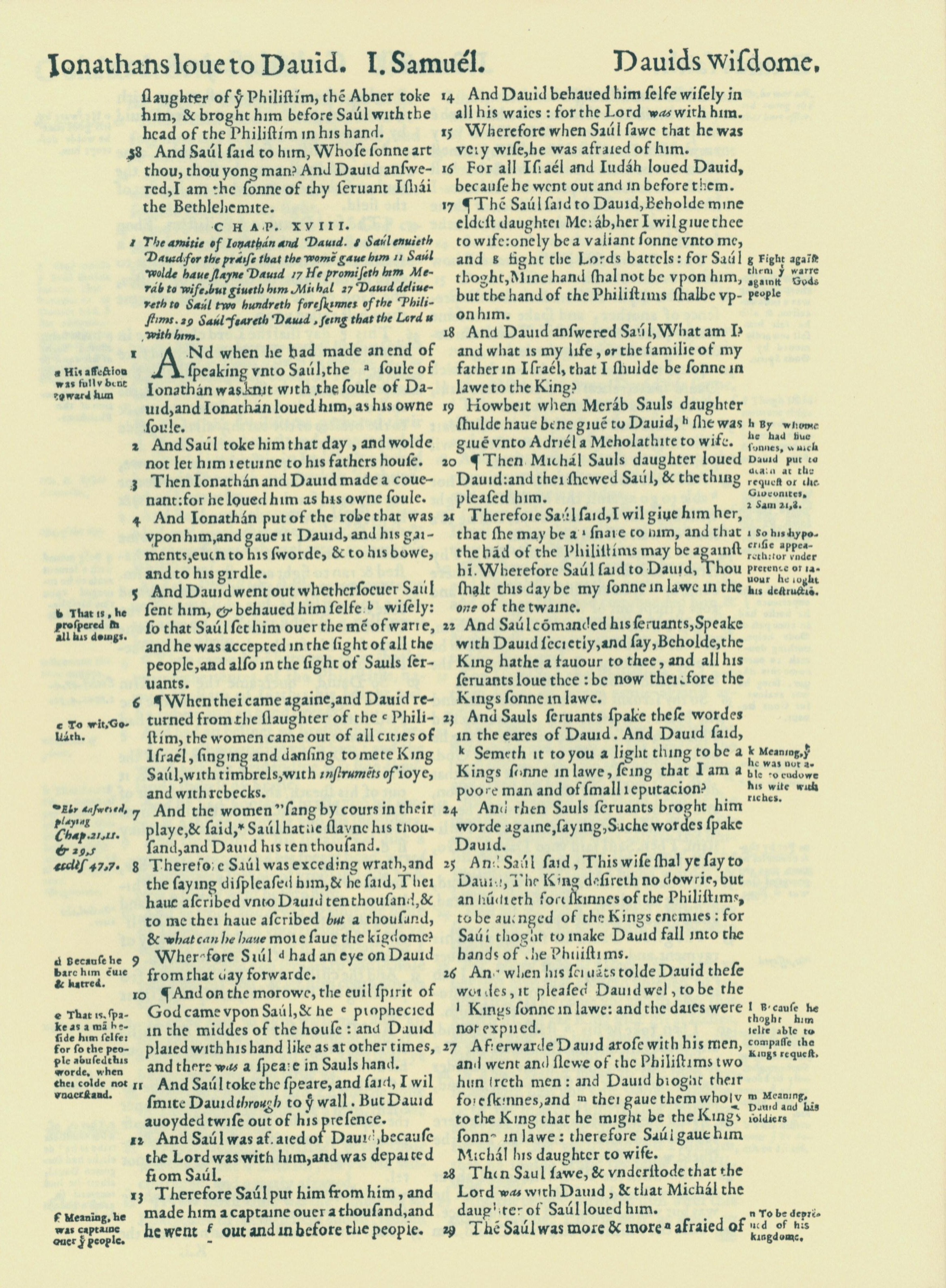 1560年THE BIBLE AND HOLY SCRIPTURES 撒母耳记上 17 章 58 节到 18 章 29 节