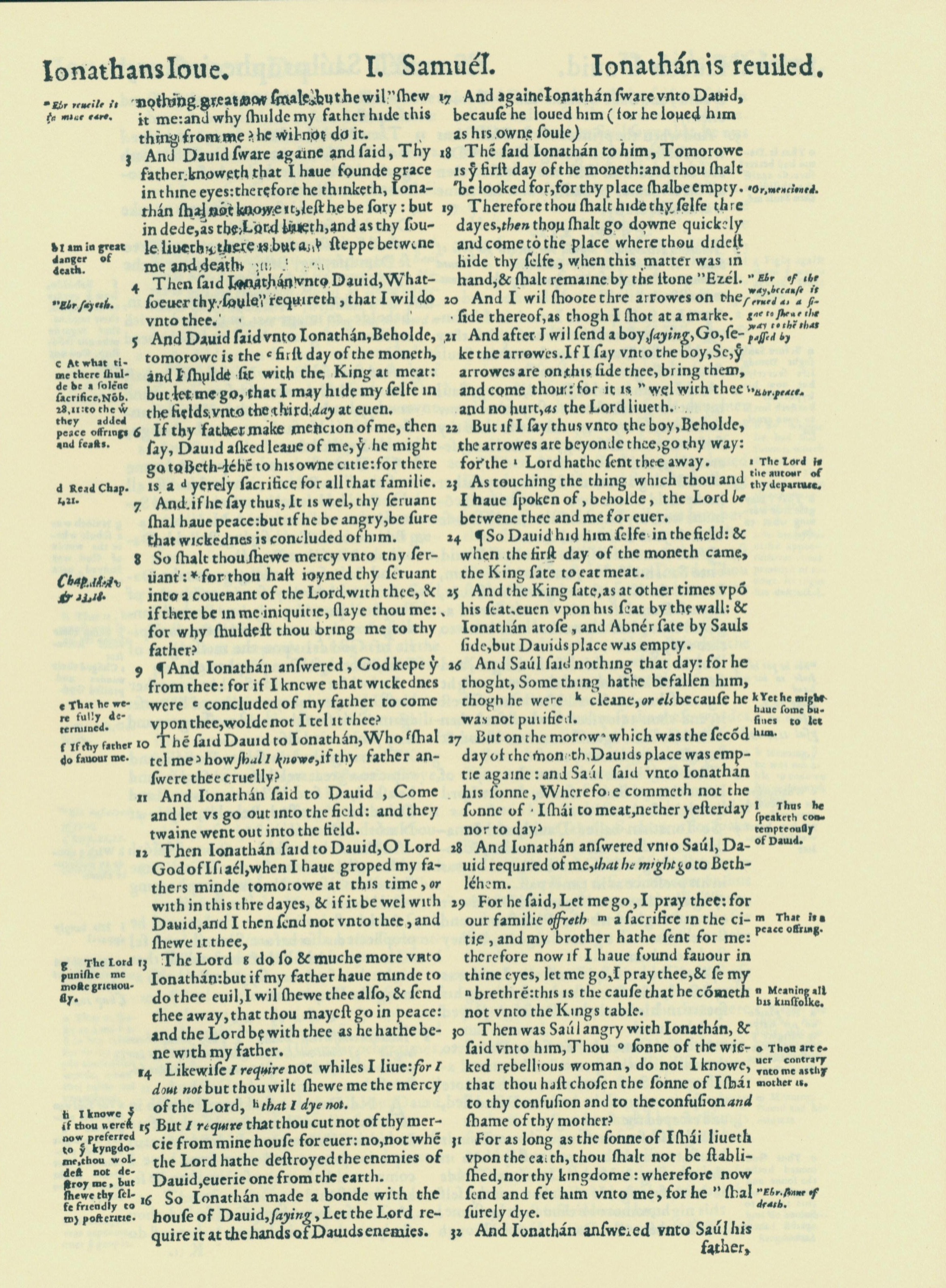 1560年THE BIBLE AND HOLY SCRIPTURES 撒母耳记上 20 章 3 节到 20 章 32 节