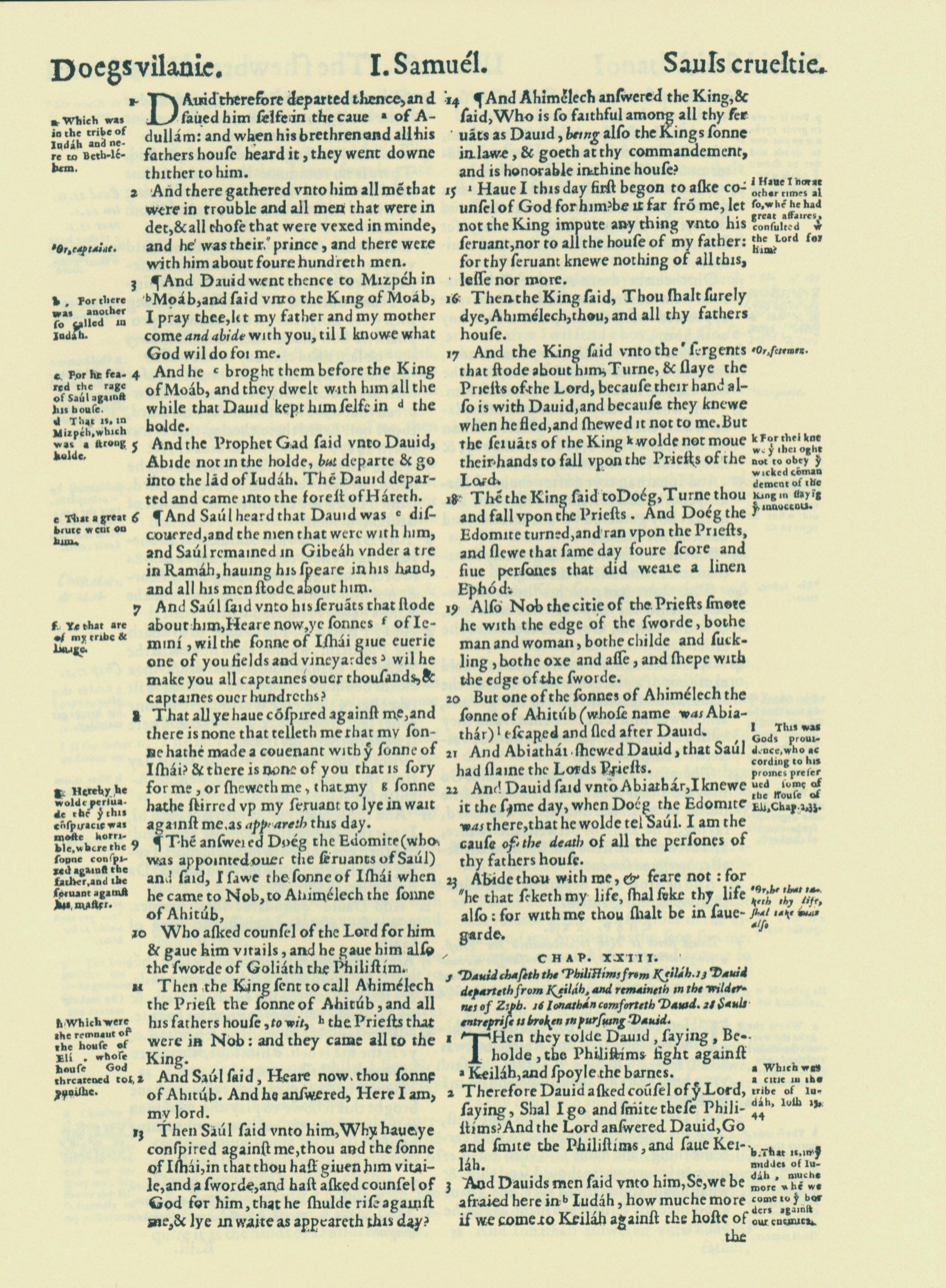 1560年THE BIBLE AND HOLY SCRIPTURES 撒母耳记上 22 章 1 节到 23 章 3 节